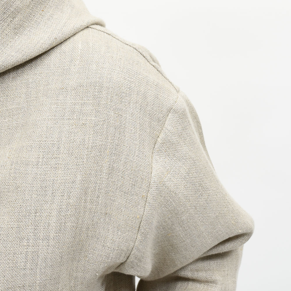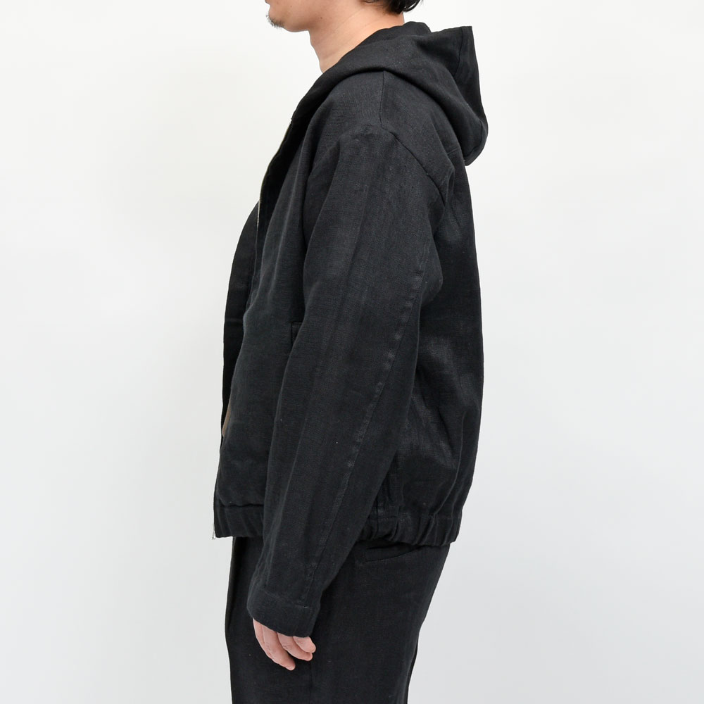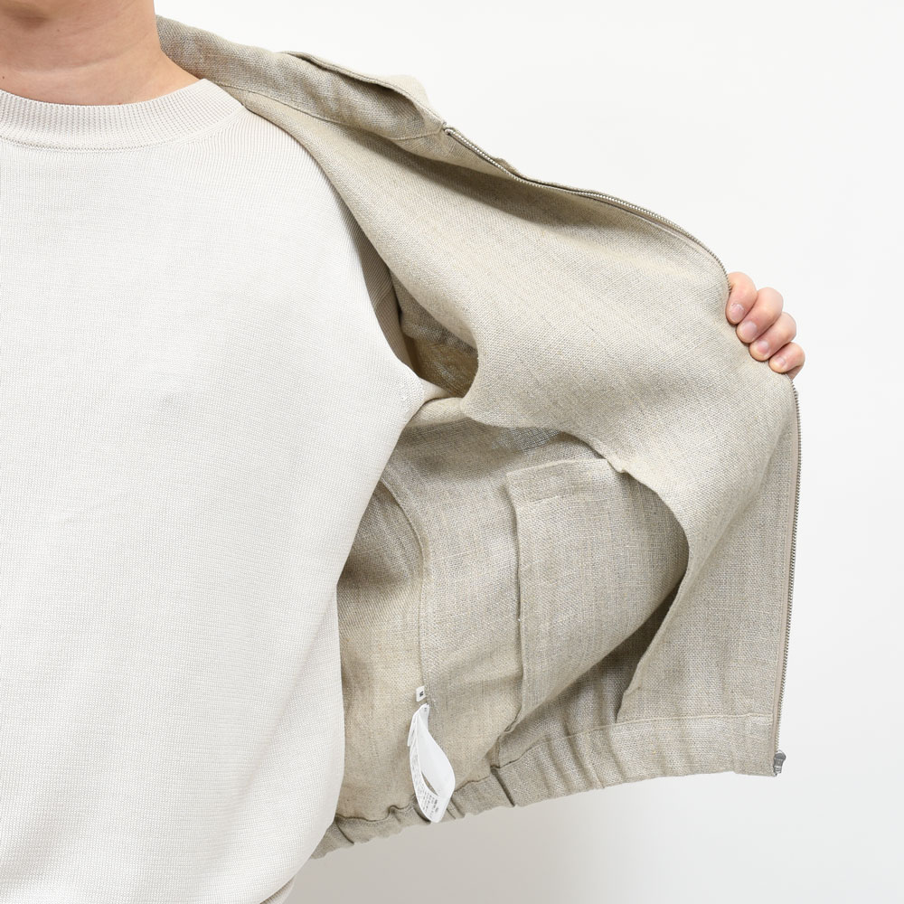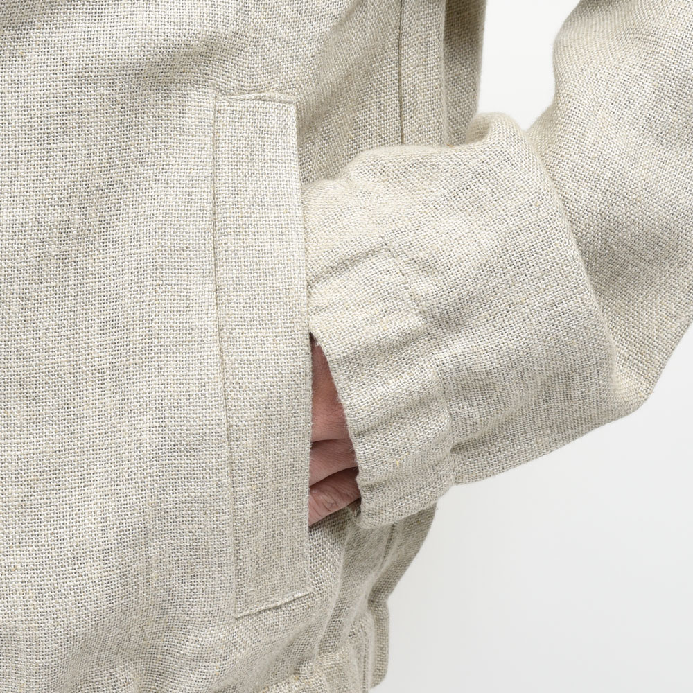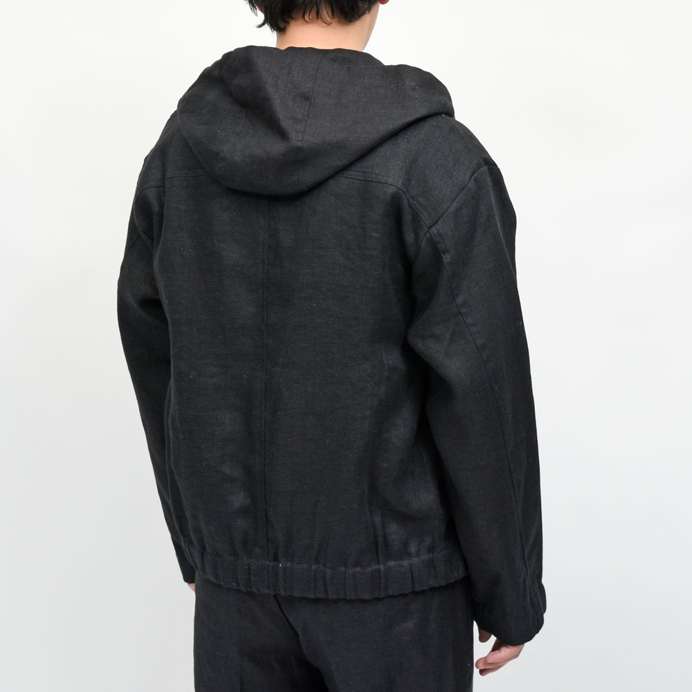 フーディータイプのブルゾンは使用する生地によってかなり印象が変わるわけでして、こちらはシャキッとしたリネンを用いているのでとても上品です。