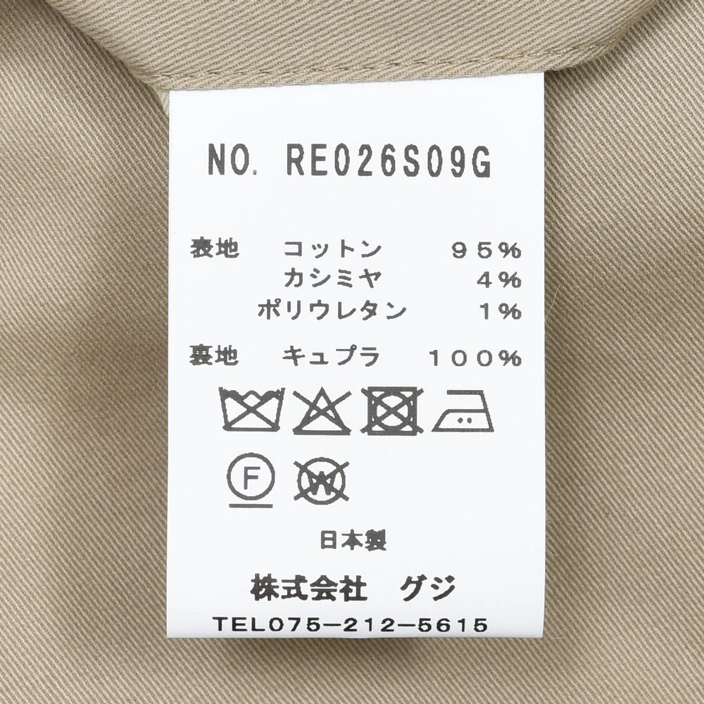 : 表地:コットン95% カシミア4% ポリウレタン1%裏地:キュプラ100%袖裏:キュプラ100%
