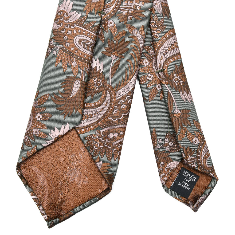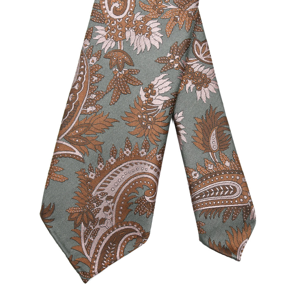 落ち着いた地色に対してボタニカル柄の配色が程よいアクセントとなり、柄物でありながらクラシックなスーツにも無理なく合わせていただけます。