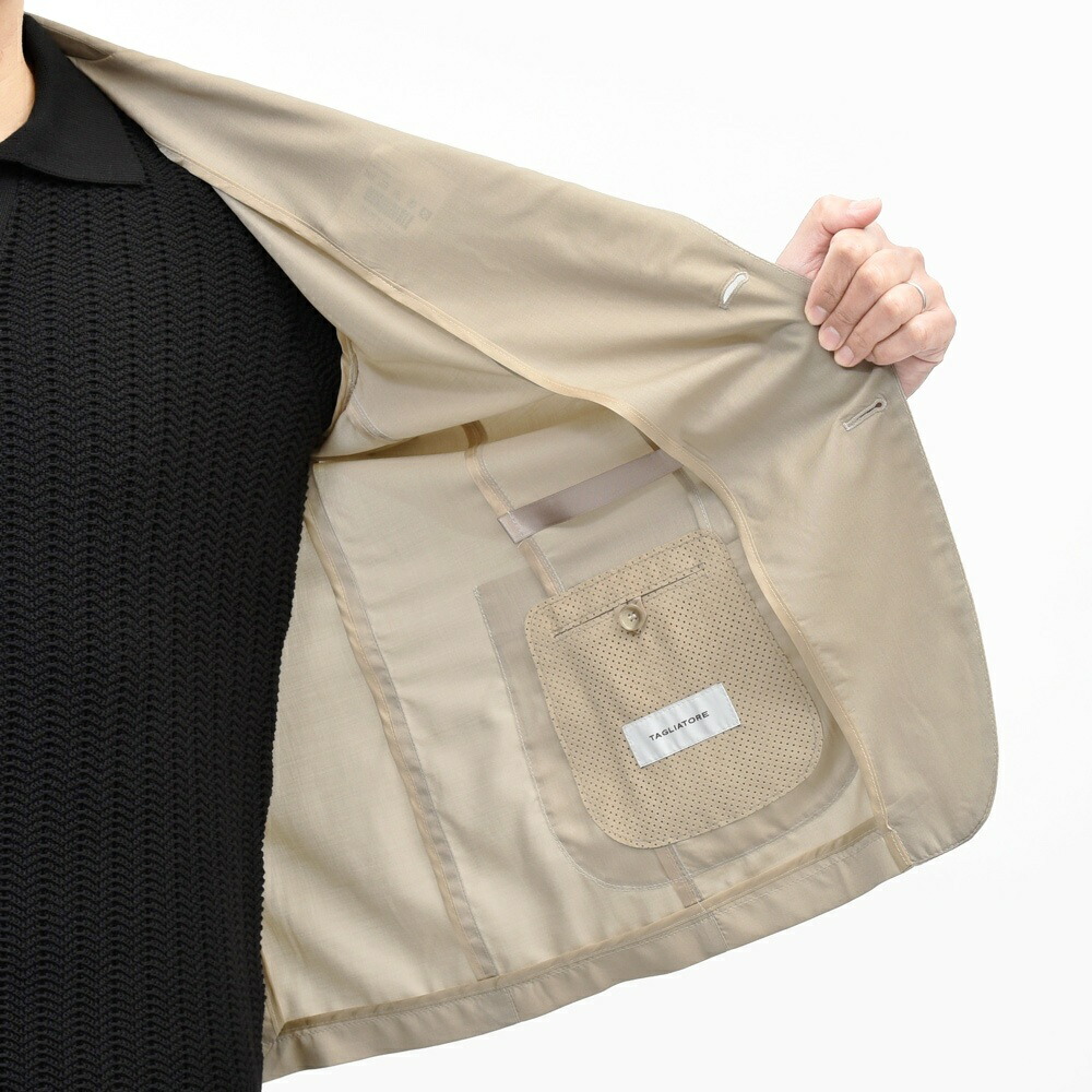 世界的に春夏シーズンの温暖化が進んでおり、日本だけでなく他でも「軽さとカッチリ感が両立された色気のあるジャケット」が求められている背景があることから、見返しの生地を大胆に削減し、副資材も軽い物しか使わずに仕立て上げたモデルがLIGHTというわけです。