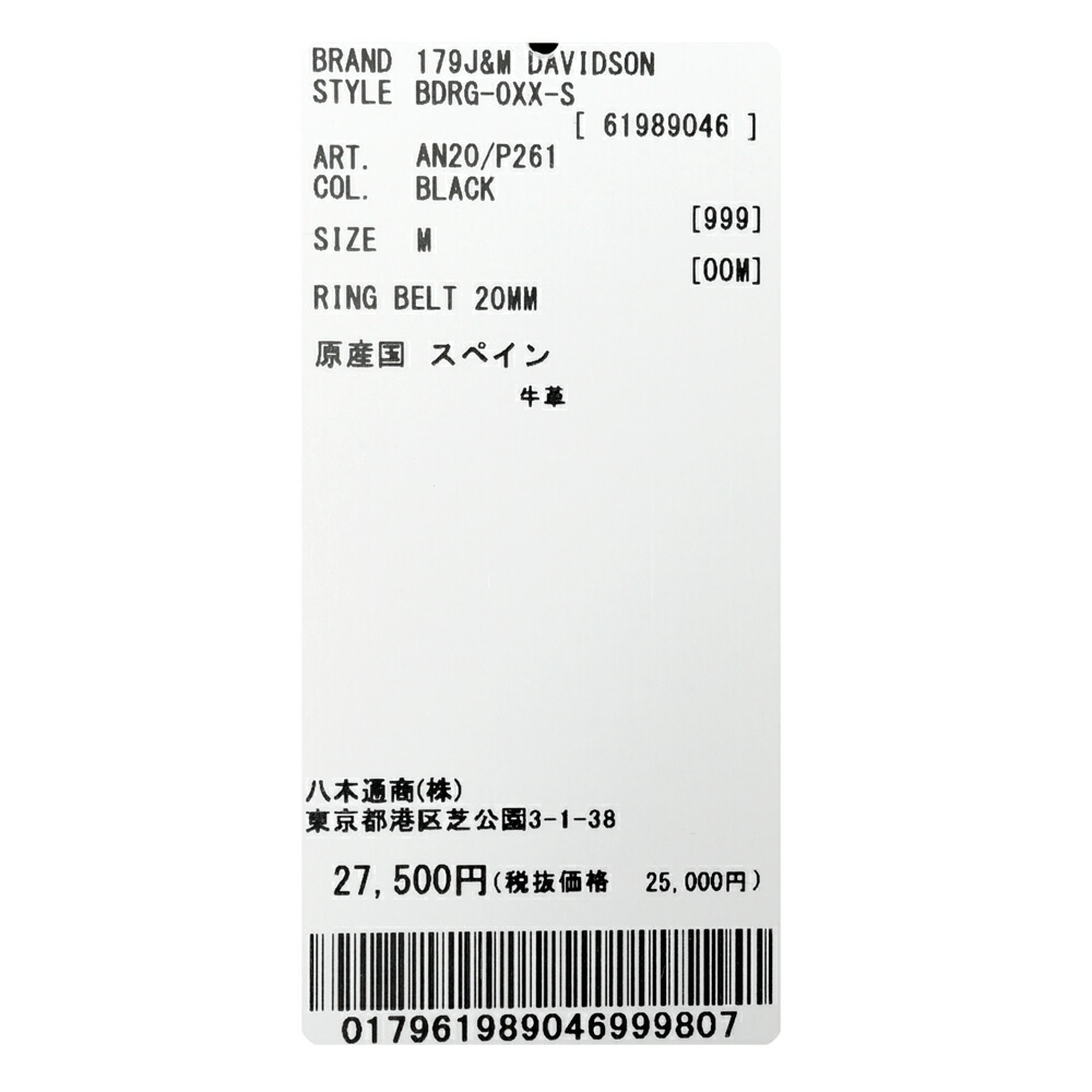 RING BELT 20MM アニリンレザーリングベルト 18161003020