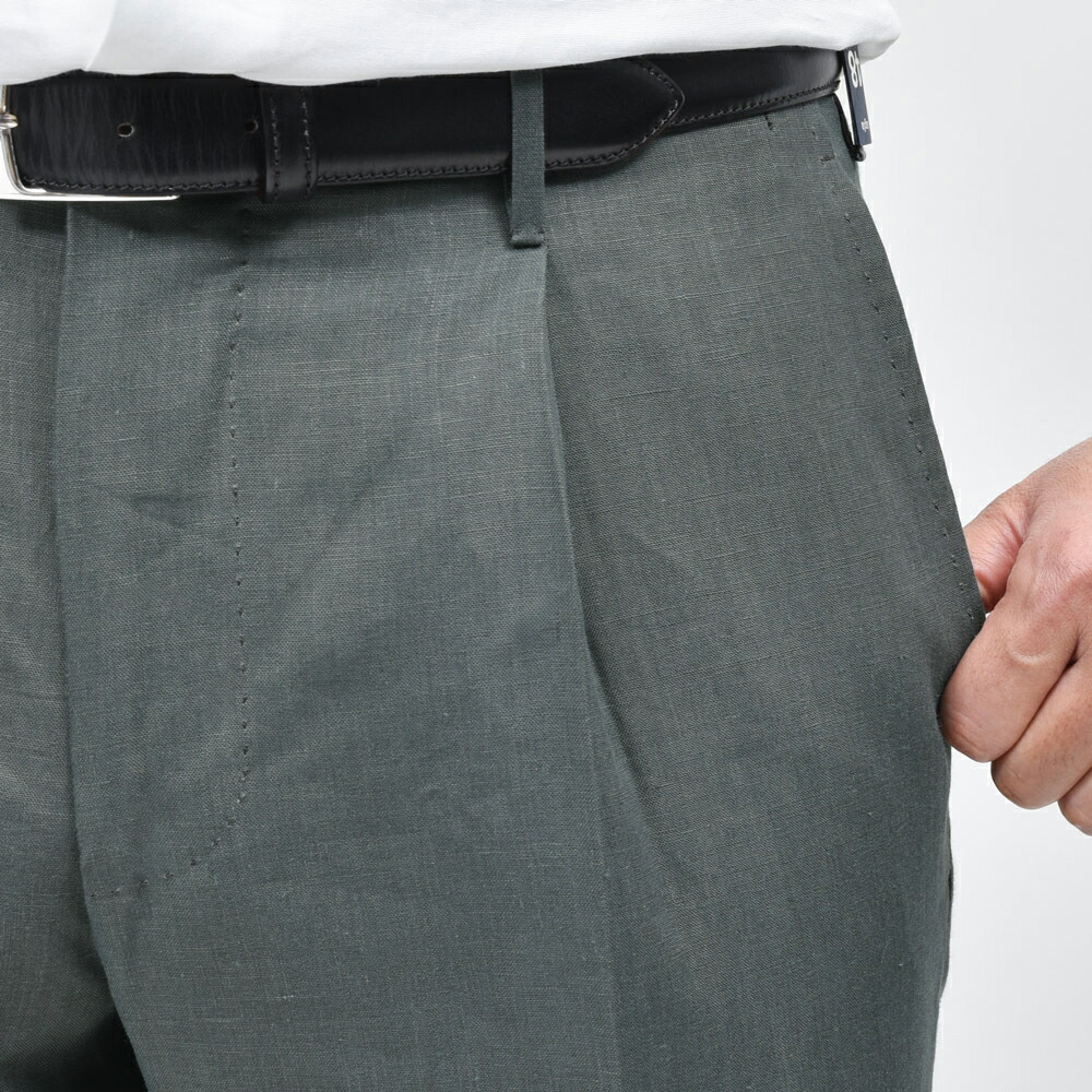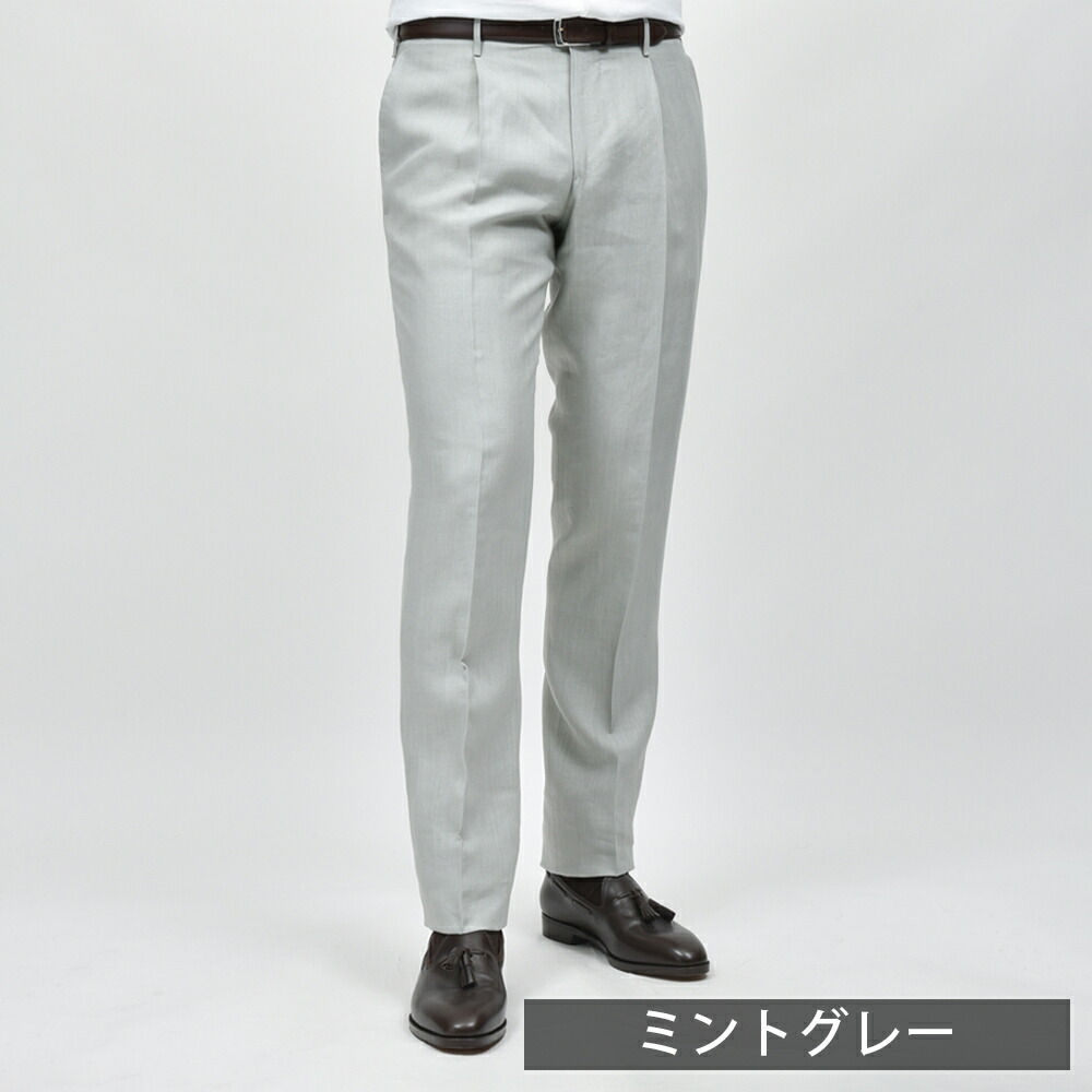 1プリーツのテーパードラインに丁寧なプレスが重なることで、軽快さと端正さが共存する、春夏にこそ選びたい一本に仕上がっています。