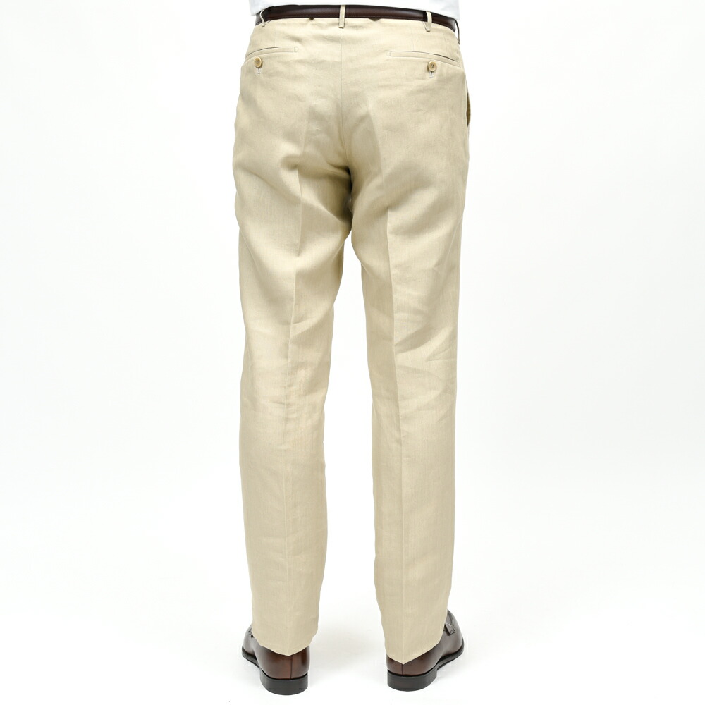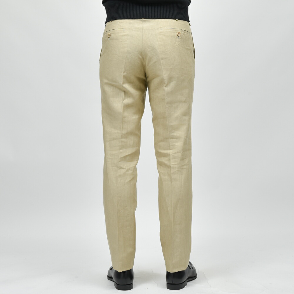 上質なリネン100%の生地は、軽やかでありながら適度なハリとコシを備え、通気性・速乾性に優れた春夏に最適なファブリックです。