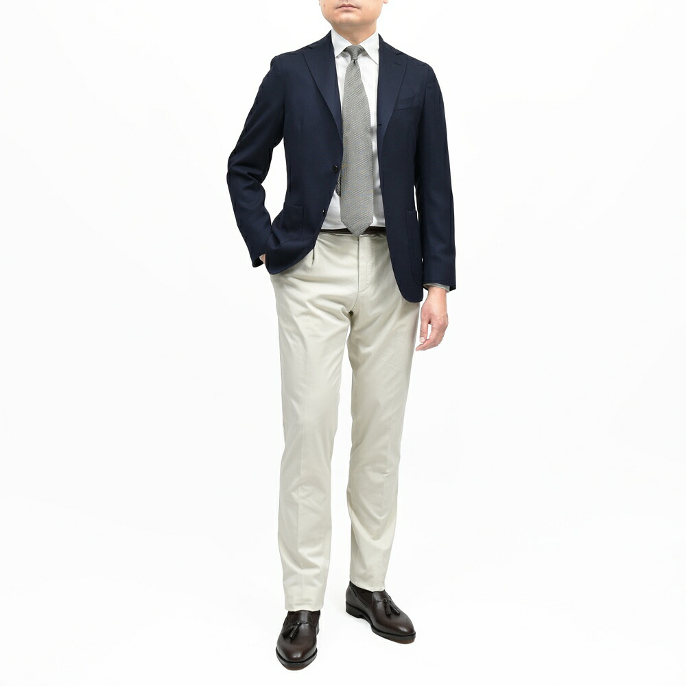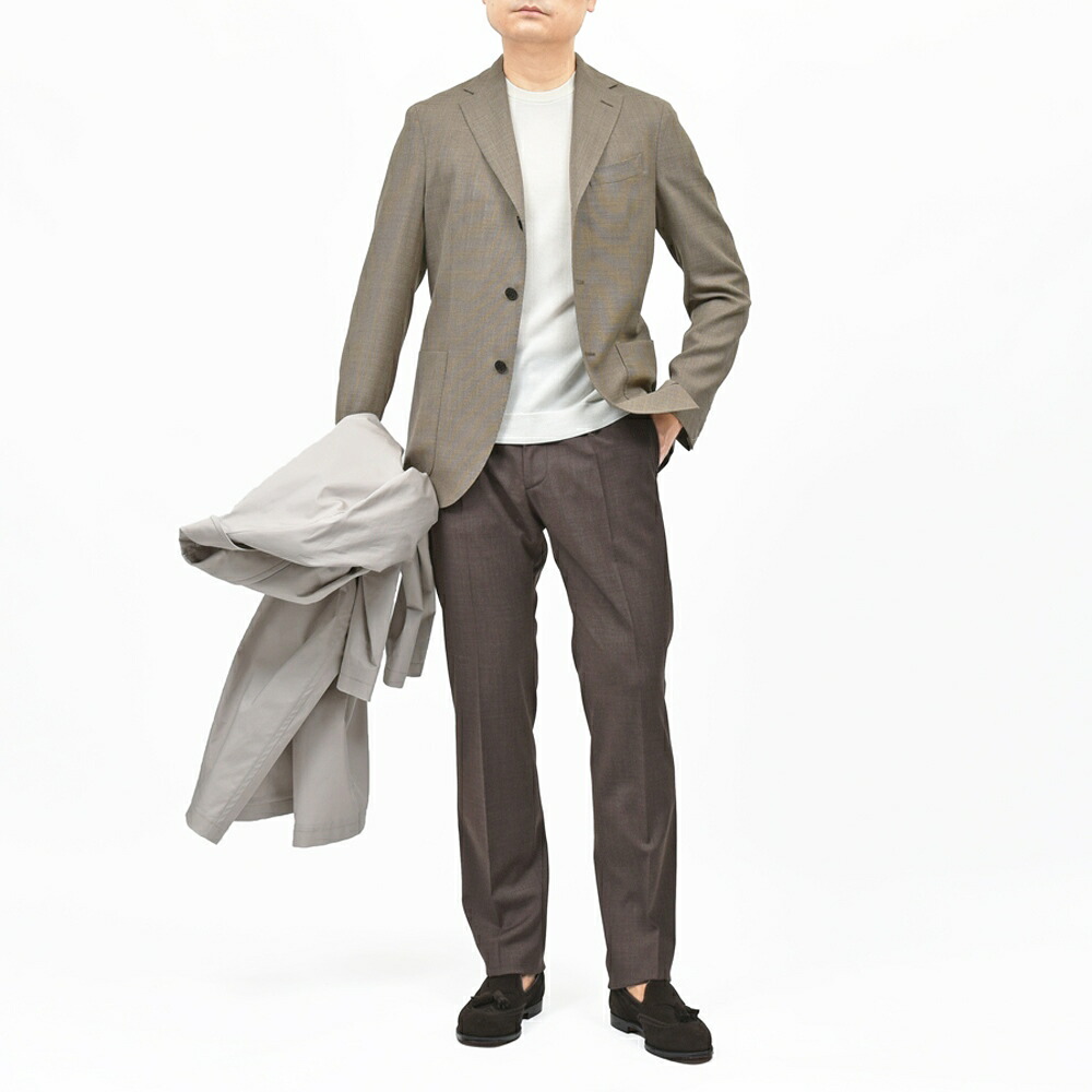 着心地は軽く、ナチュラルなショルダーラインで柔和なムードを表現。オンオフ兼用で使って頂けるジャケットの決定版的一着だと断言できます。