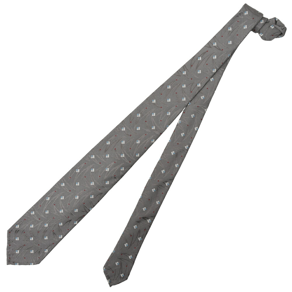 抽象的なジャカードを織り込んだグレーのグラウンドは、角度によって表情が変わる奥行きのある生地で、シルクならではの上品な光沢が印象的です。