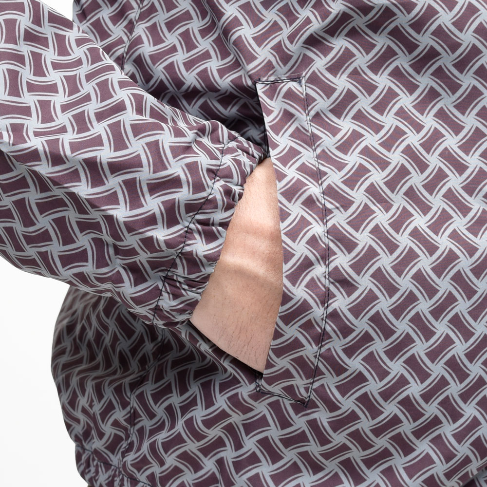 Drumohrのアイコンパターンである“ビスコッティ”柄を全面にプリントしたポリエステル素材のジップフーディー、ブランドとしてはゴルフ用というわけではなく、プールやクルージングの際の風よけ、ウィンドブレーカー的な用途のものだと思います・・・が、これがゴルフにもなかなか良さそうですね。