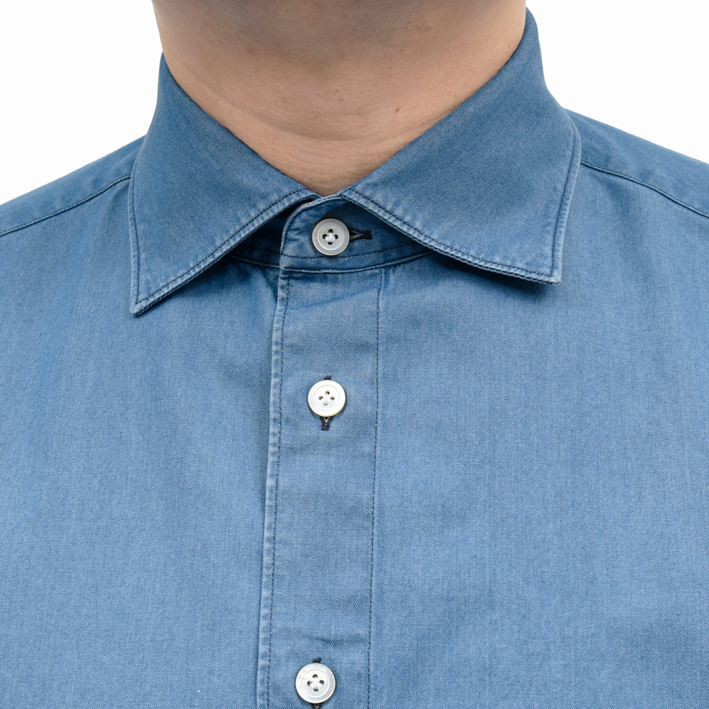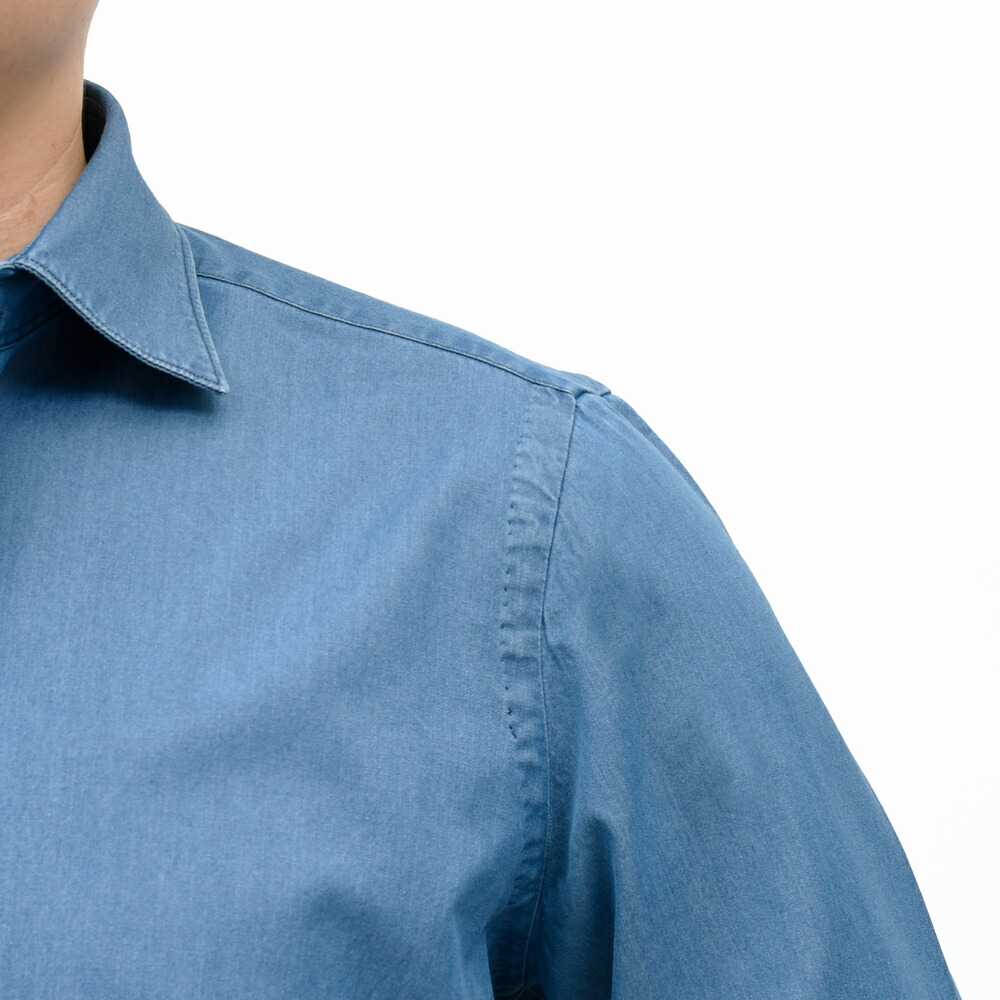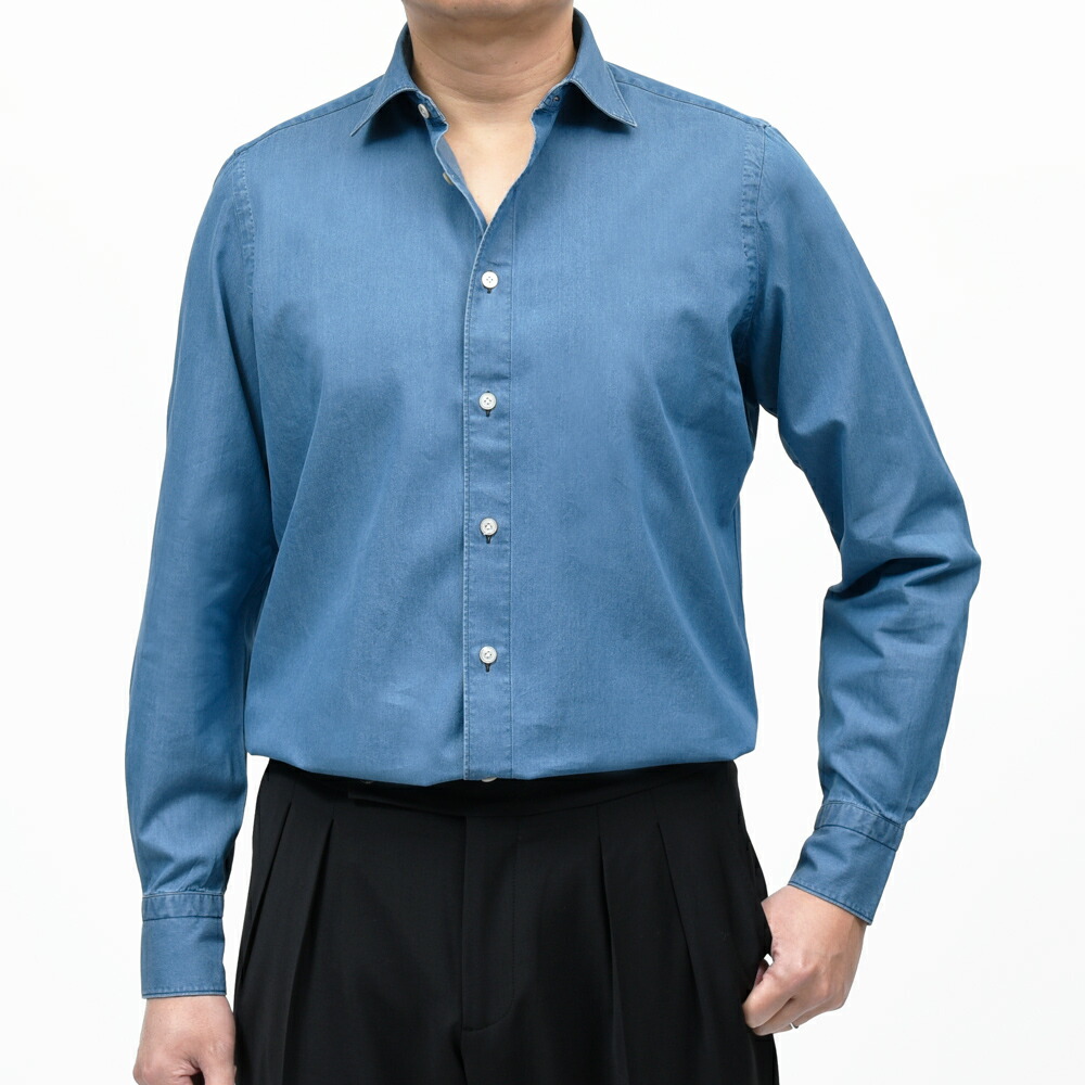 LUIGIルイジ/BALIバーリ コットンシャンブレーワイドカラーシャツ C0160D 11061020039