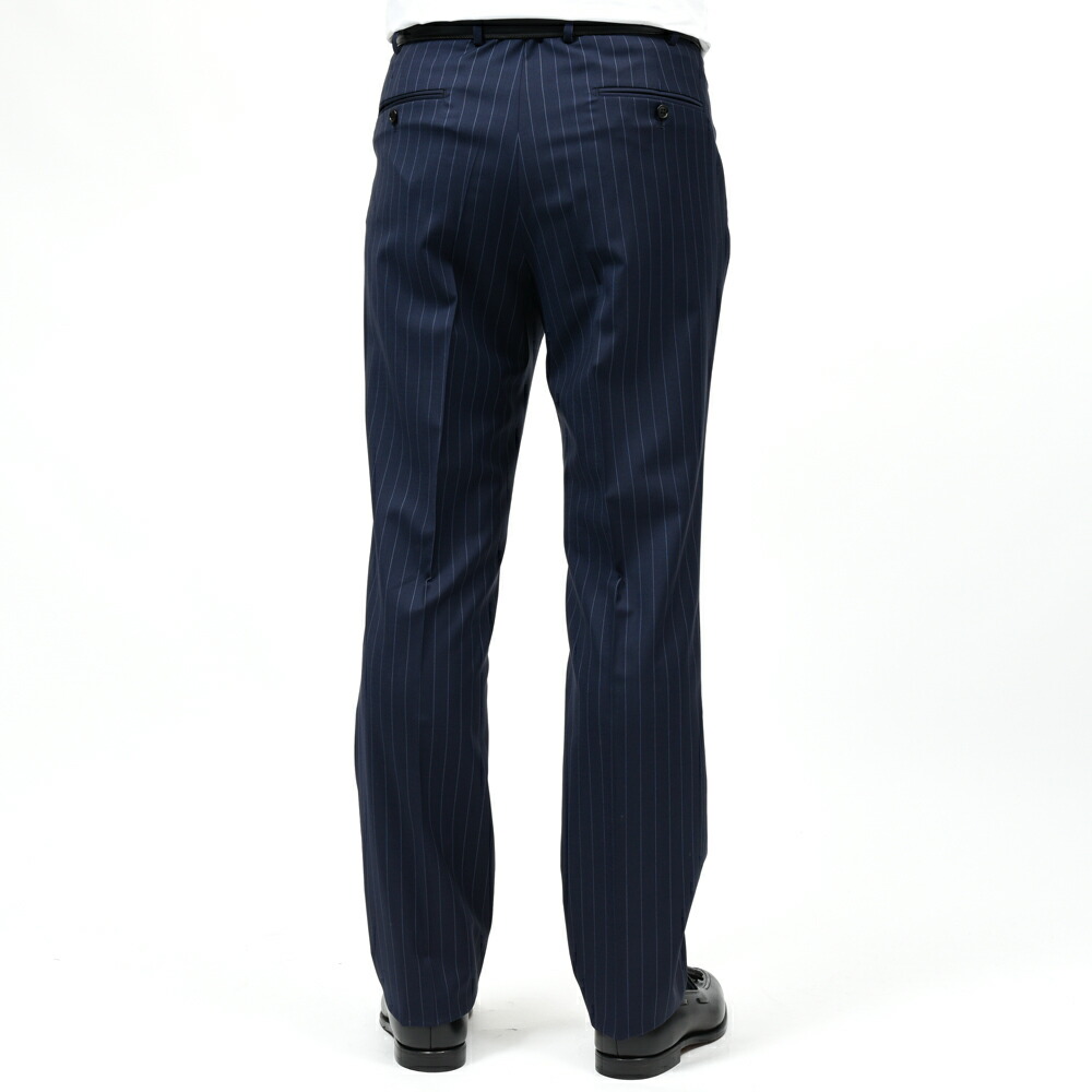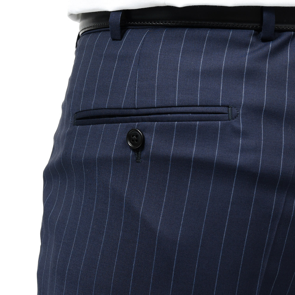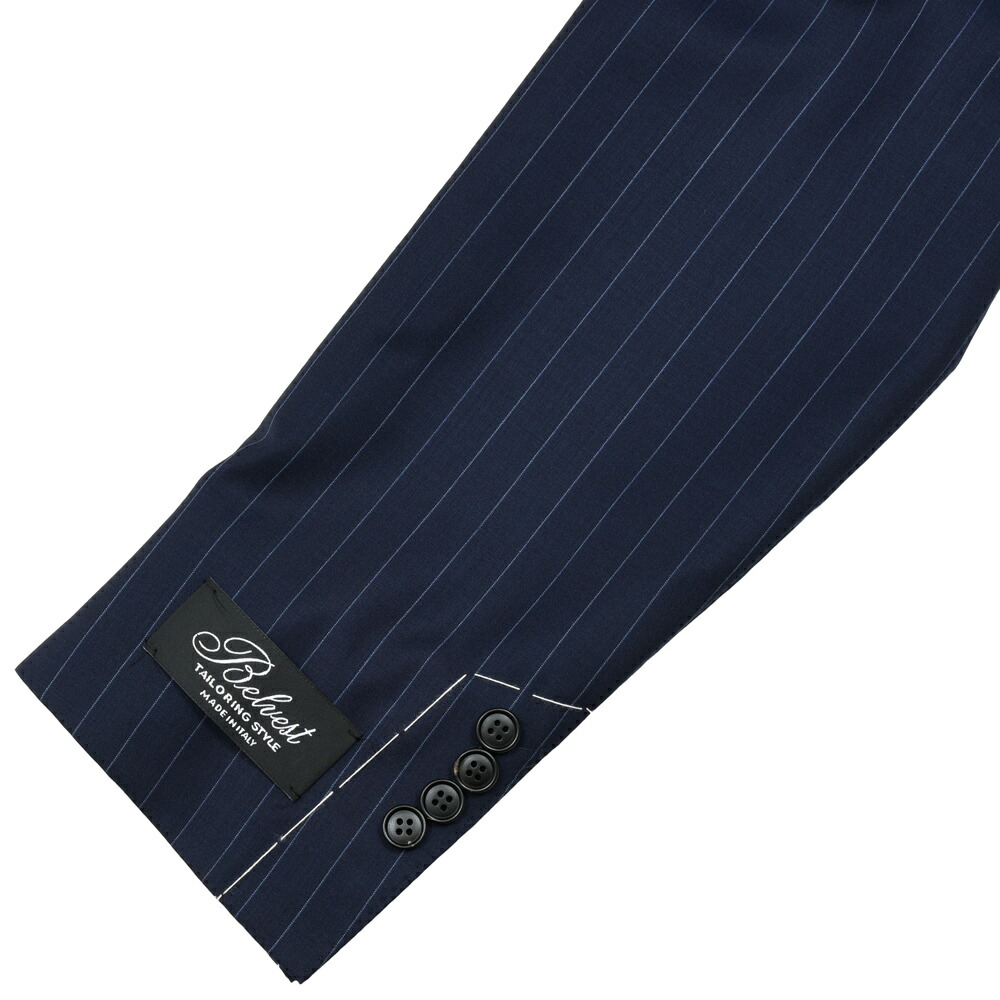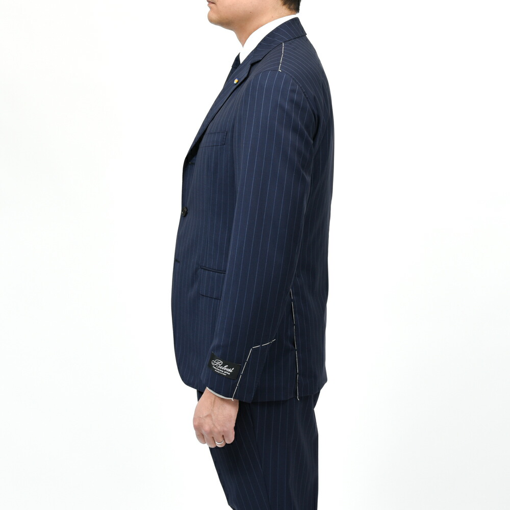 SUPER130’sクオリティのトロピカルウールでピンストライプ、Belvestらしい軽やかさとしなやかさ、色気が備わった仕上がりになっています。