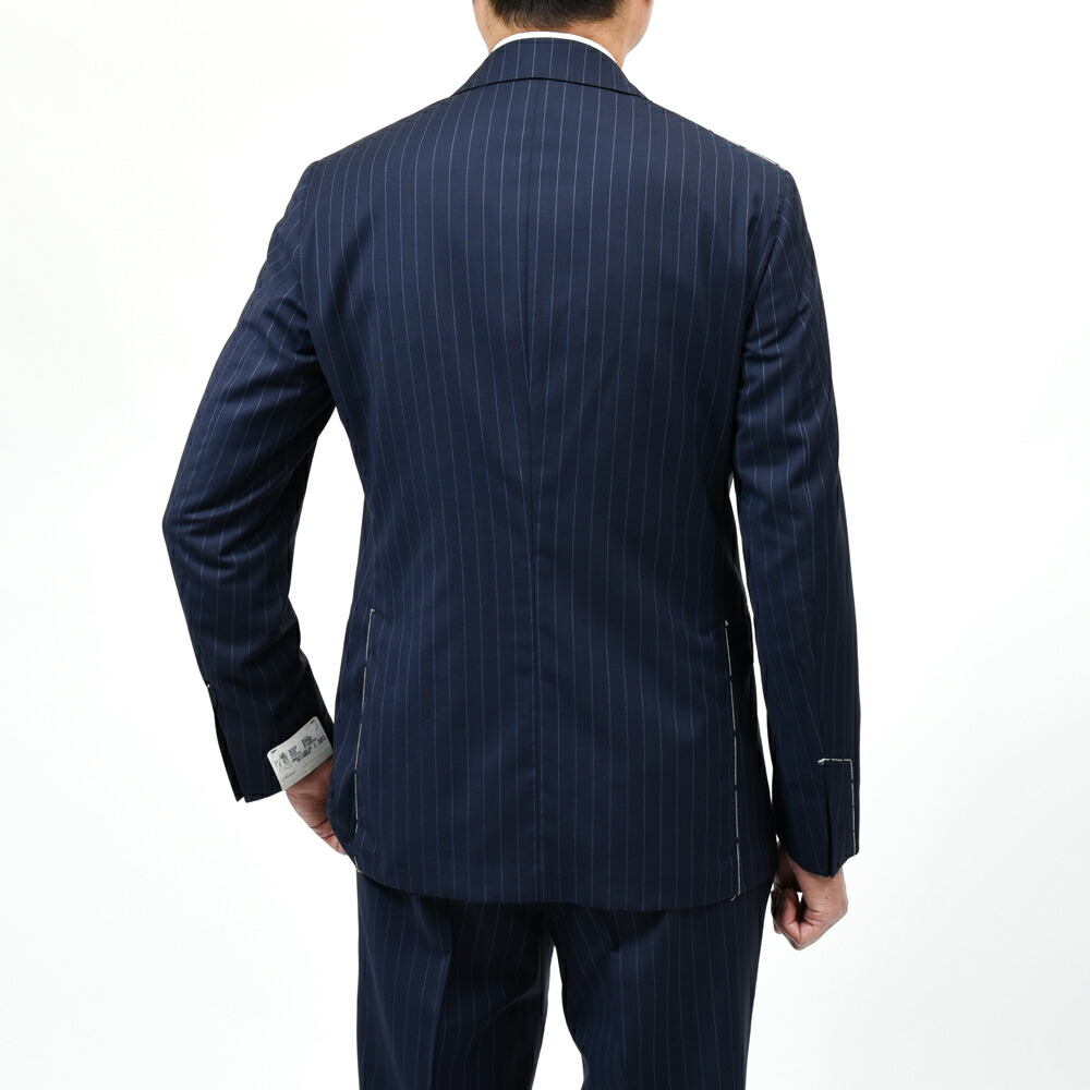 軽快なアンライニング仕立てと相まって、春夏シーズンに適したエレガントで快適なスーツに仕上げられています。