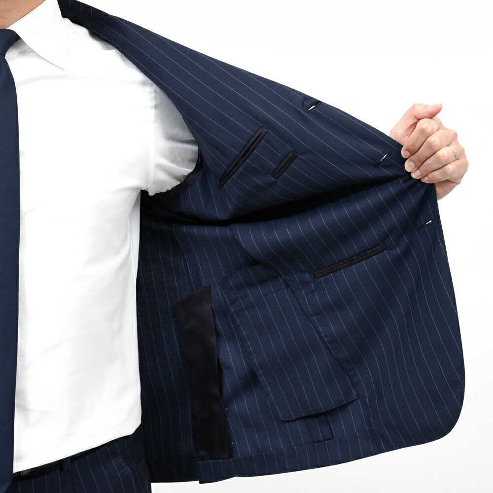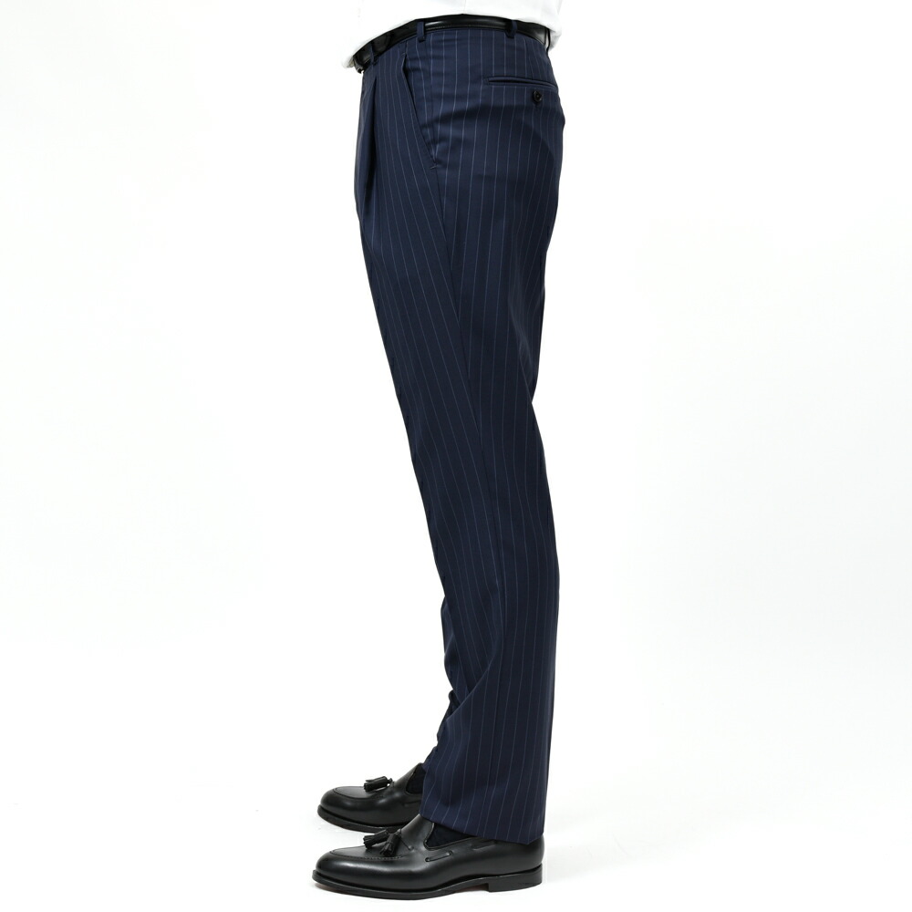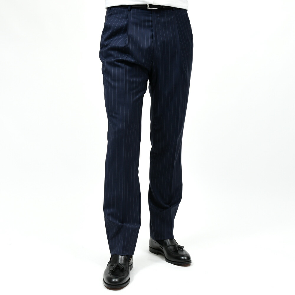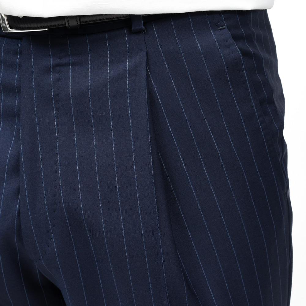 ウールトロピカルピンストライプ3B1プリーツスーツ 17165201020