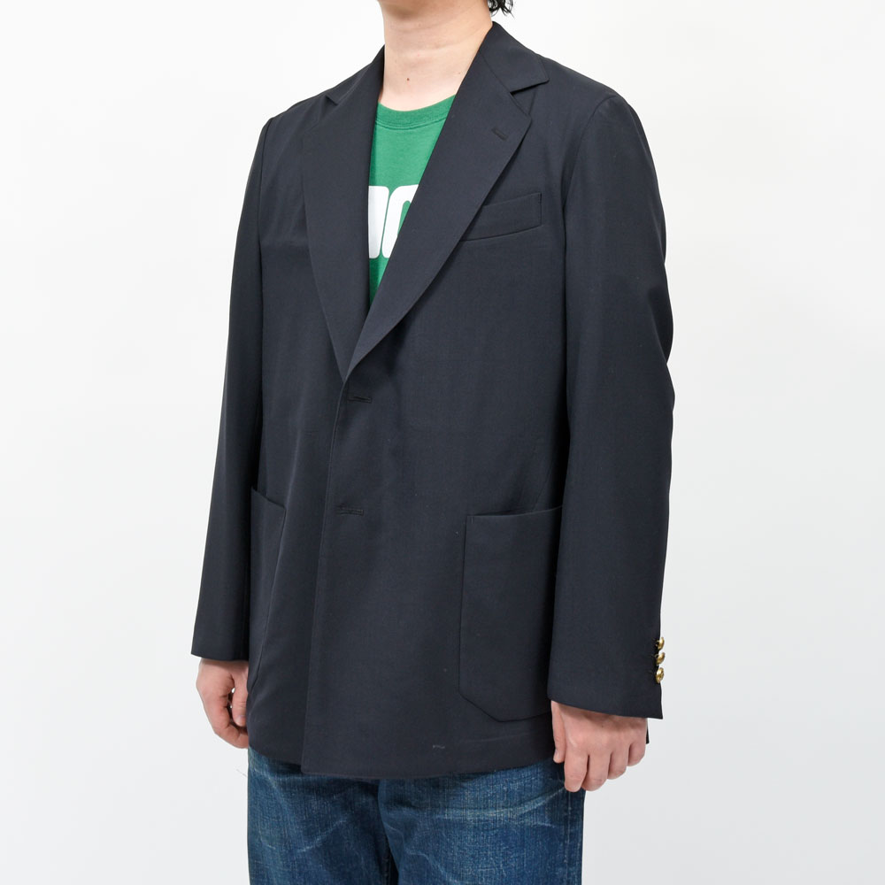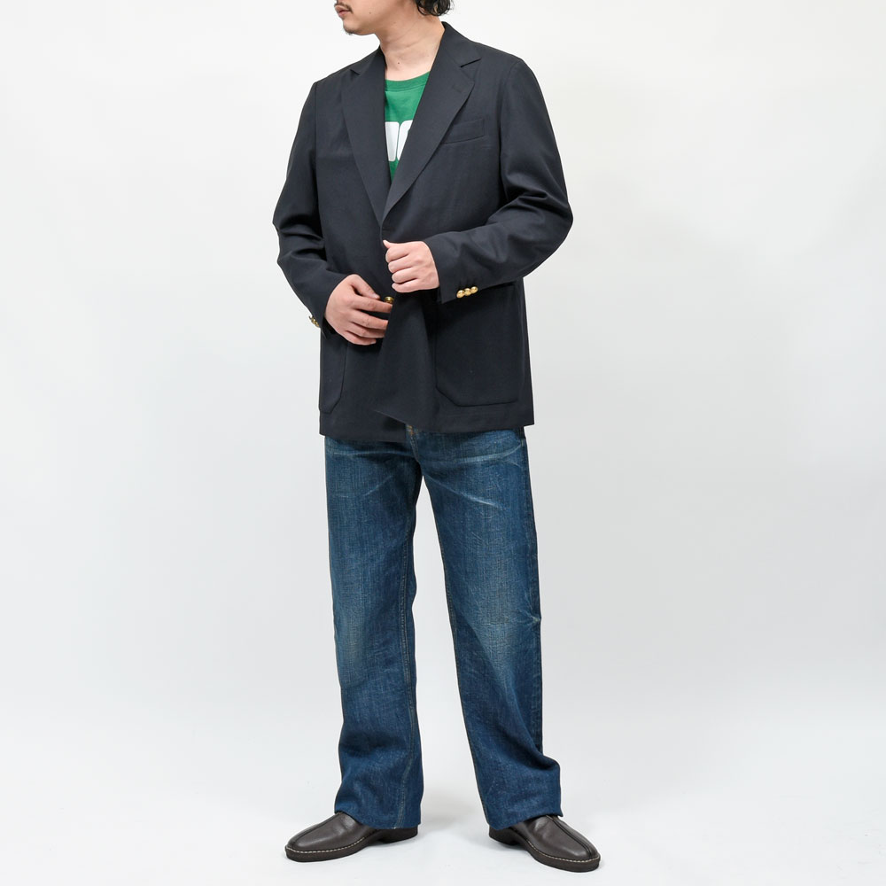 ウールパンツでクリーンに合わせてもよし、Tシャツにデニムでカジュアルに崩すもよし、ネイビージャケットの懐の深さがありつつ、ほんのり独自性も漂う素晴らしい一着だと思います。