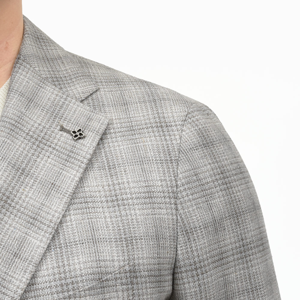 春夏シーズンのジャケットは清涼感が必須で、ドライなタッチであればなお良しというところですが、こちらはシルクミックスのライトツィード。非常に軽い生地でしなやかでして、ツヤツヤして見えない落ち着いた雰囲気が最高ですね。