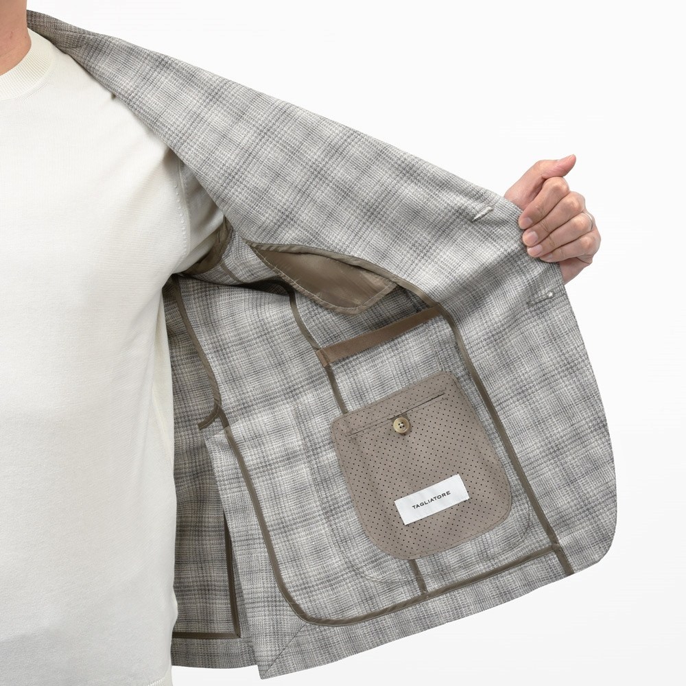 TAGLIATORE(タリアトーレ)のシングルジャケットDAKARダカール、背裏無し・袖裏無しの軽量仕立てでして、同ブランドが提案する春夏シーズンの基本モデルになります。