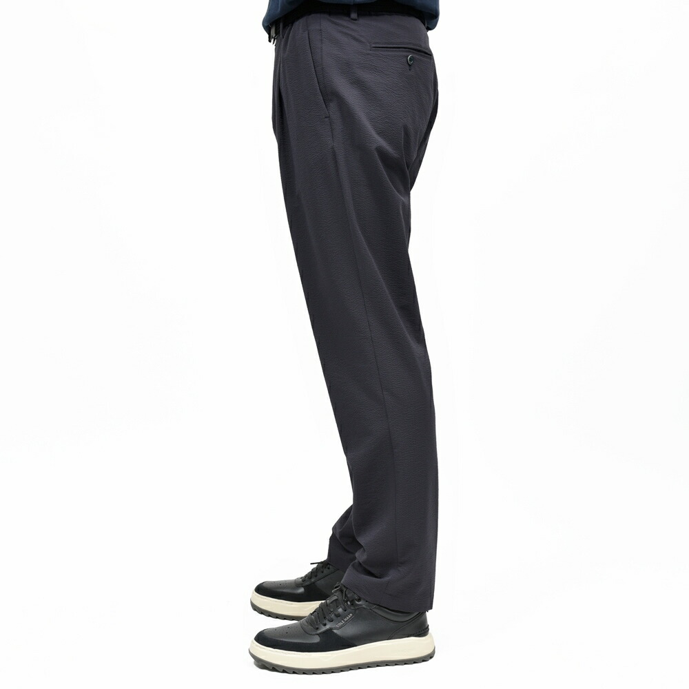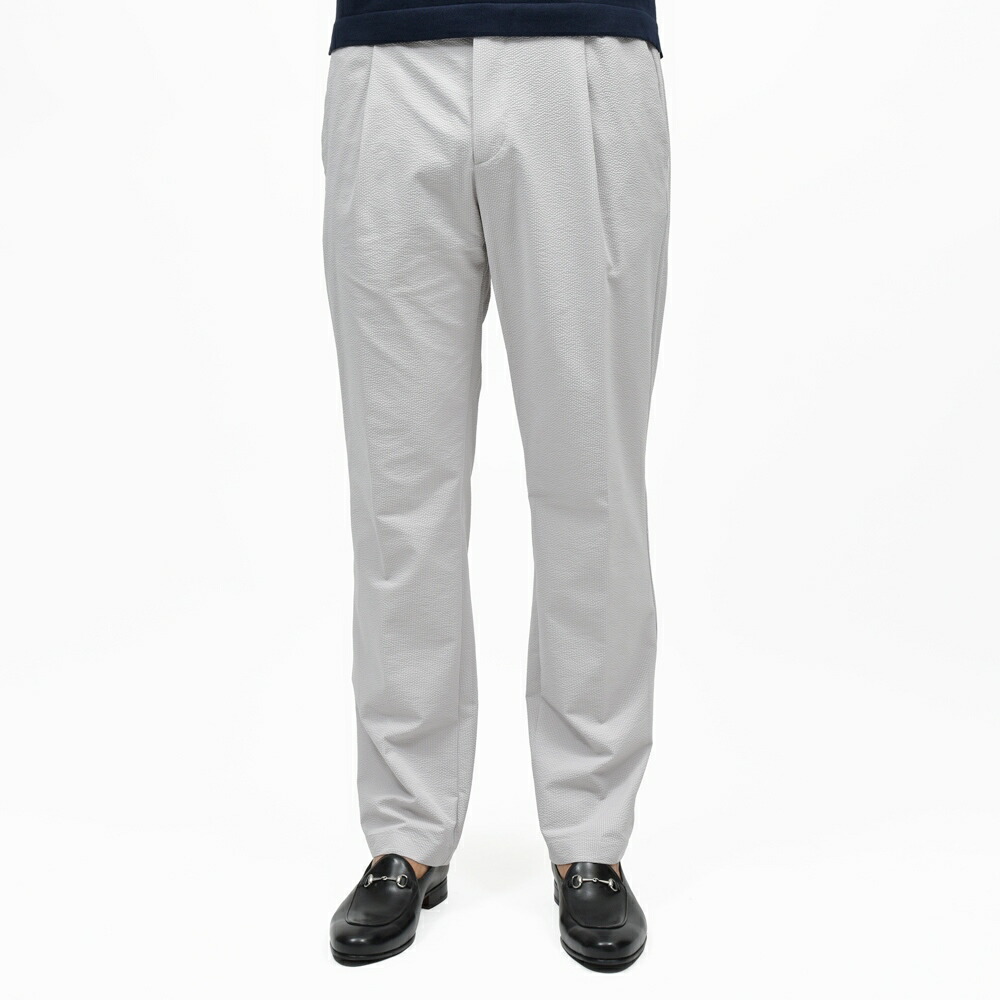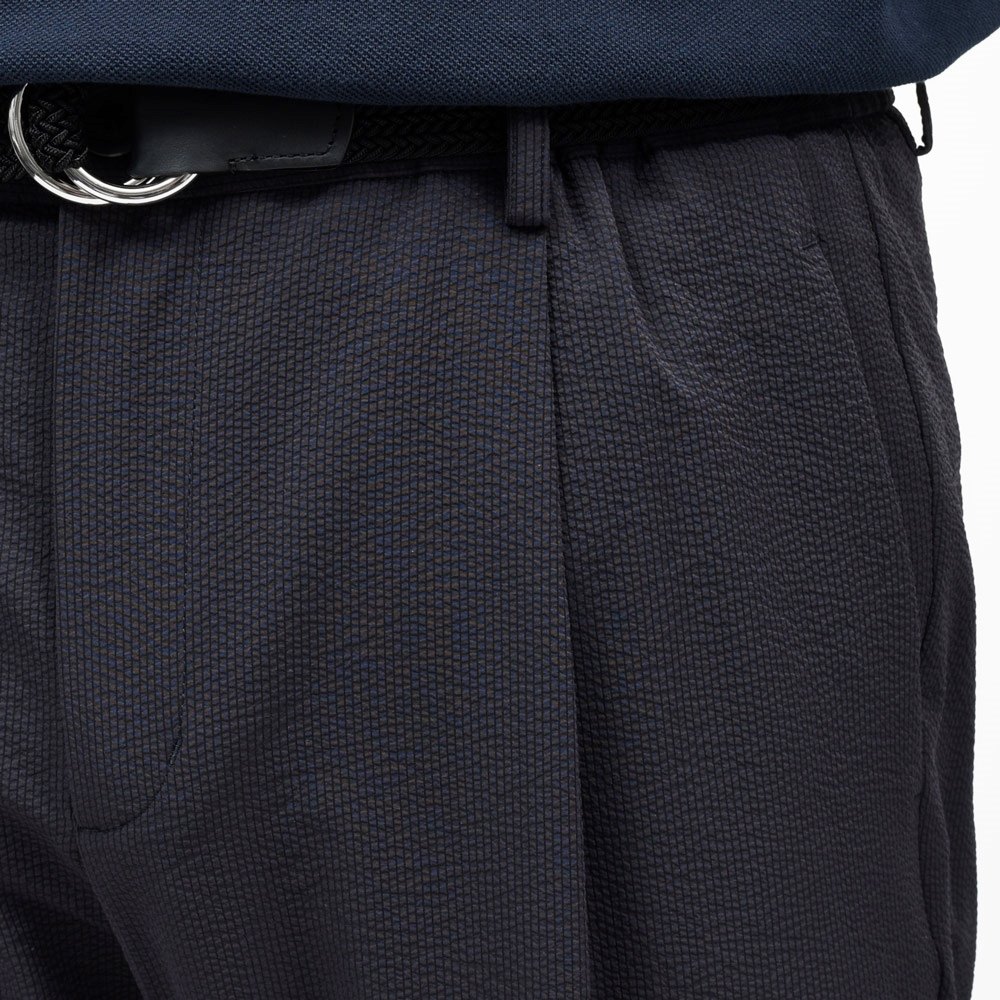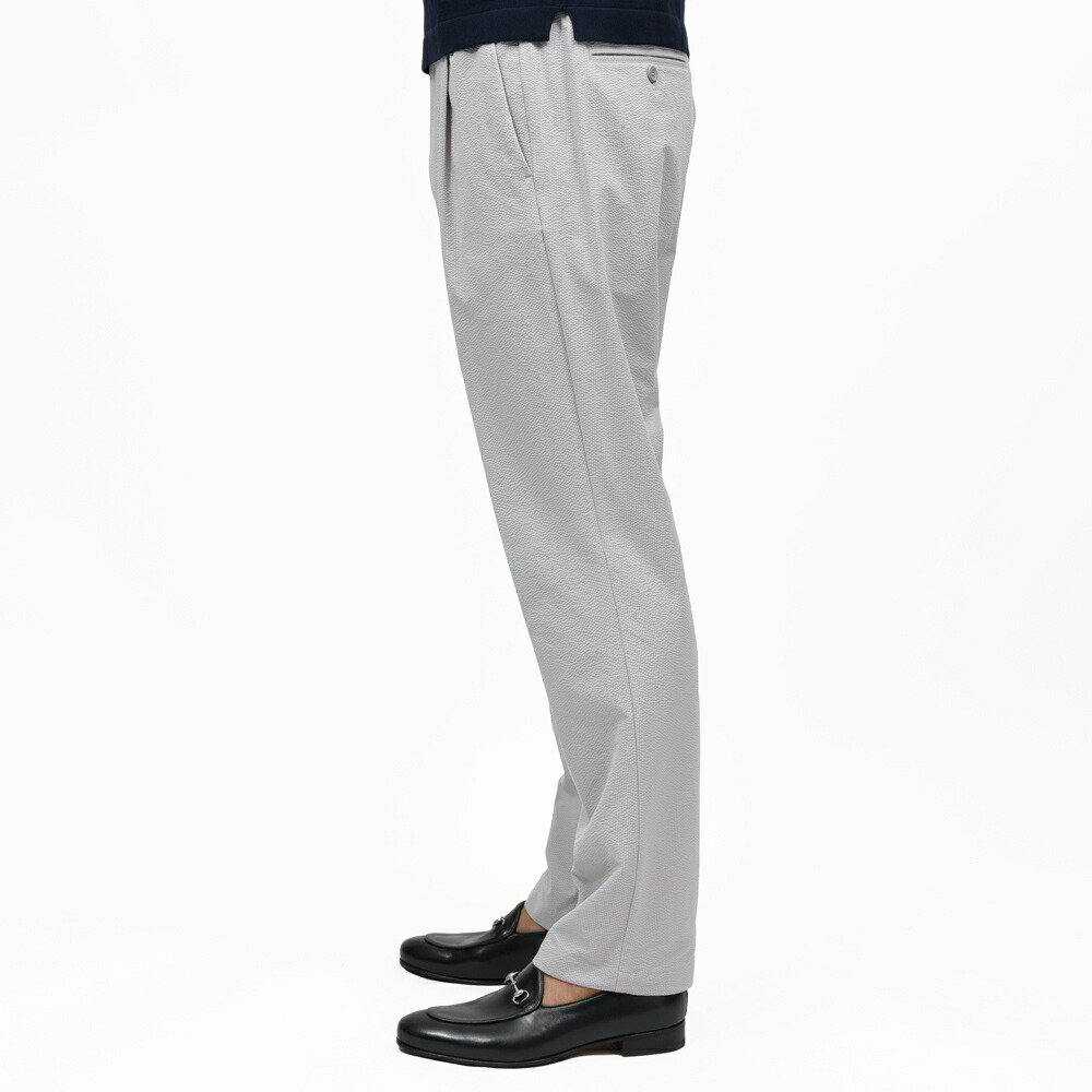 HERNO(ヘルノ)で毎シーズン人気を誇るテックファブリックのシャーリングパンツ、今シーズンはスムースなジャージ系生地ではなく、クラシカルな面持ちのテックシアサッカーでご用意です。