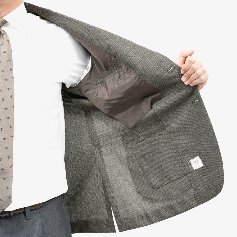 ナポリ仕立ての軽やかな構築と相まって、春夏シーズンに適した快適性とエレガンスを兼ね備えたジャケットに仕上げられています。
