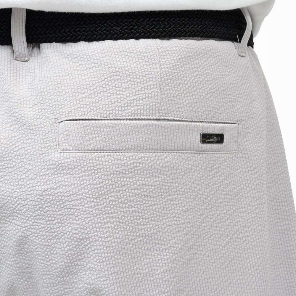 従来のイタリアンショーツであるスリムテーパードではなく程良い緩さがあるんですが、オーバーに見せない、大人の男性が違和感なく穿くことが出来るシルエットになっているところがHERNOならではですね。