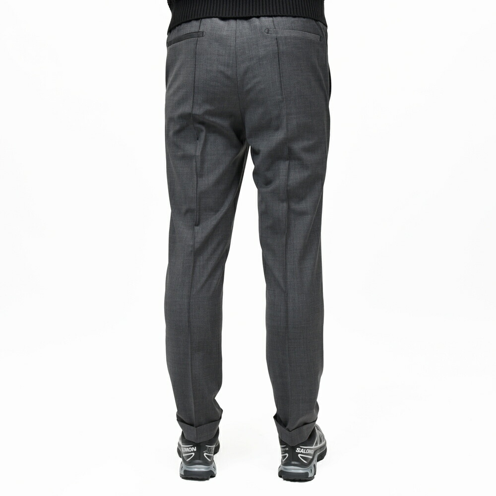 こちらはテックウールの生地になっているのでよりクリーンな印象が際立っています。上品さと快適性をバランスよく整えた一本は、スタイリングを組む際にとても便利だということは言うまでもないですよね。