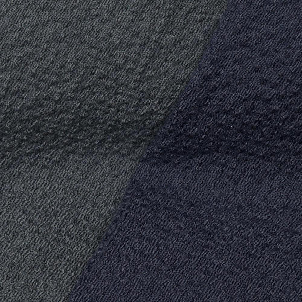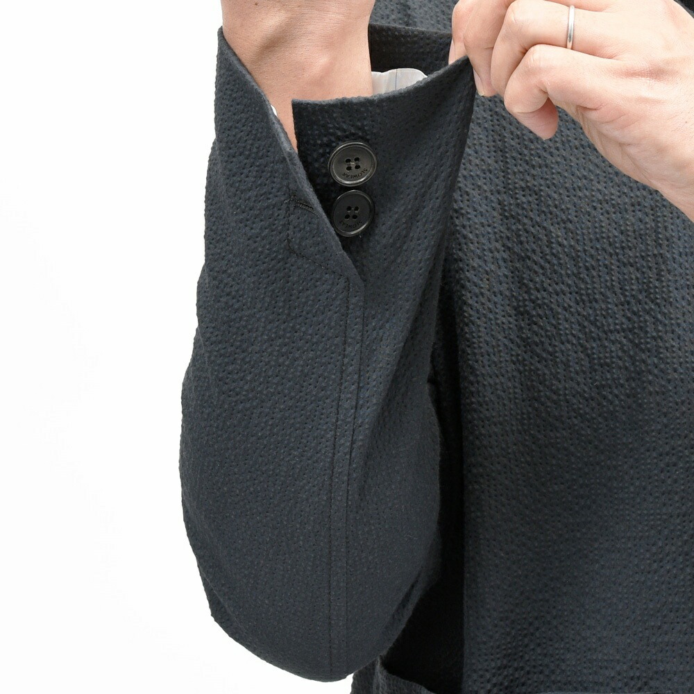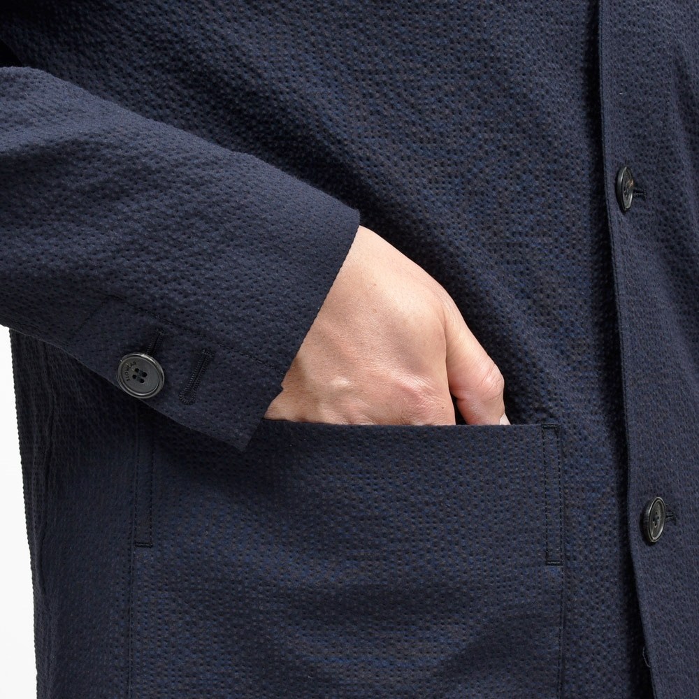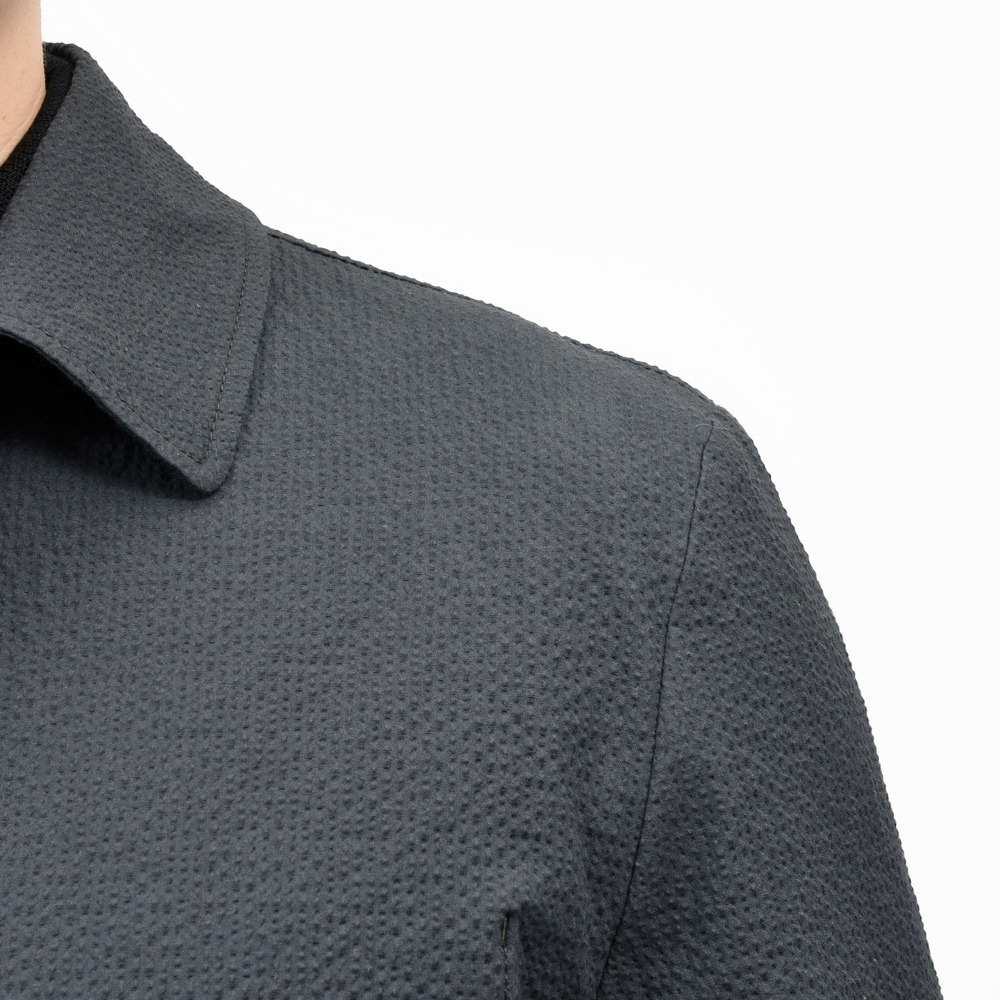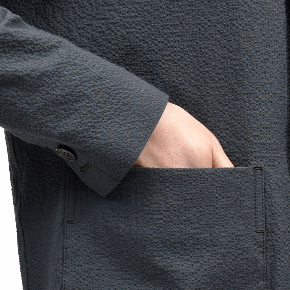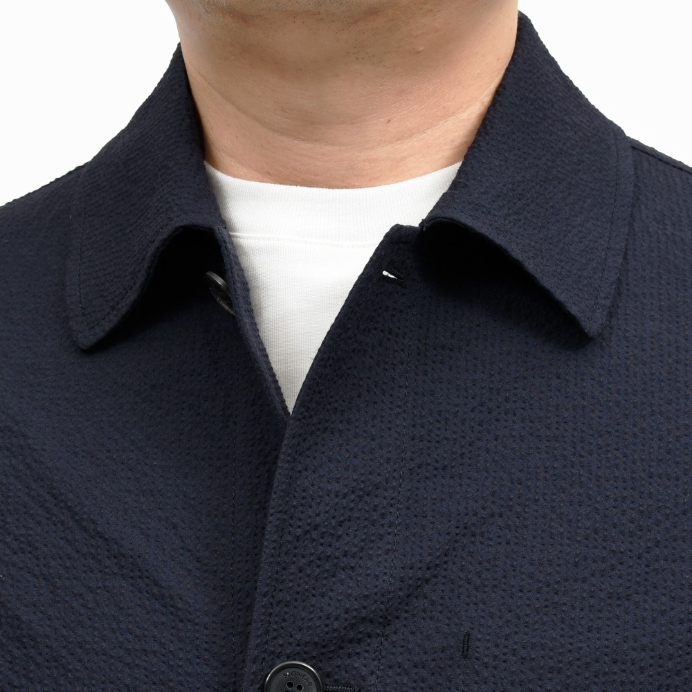 凹凸感が強く立体的で、程良いシャリ味がありながらストレッチの効いたコンフォートファブリックでして、単純なコットンストレッチタイプのシアサッカーに比べ上質で高級感のあるルックスになります。
