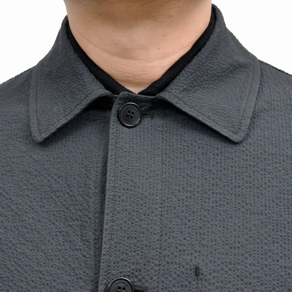 カジュアルな羽織ではありますが、カジュアルすぎない、というところが肝だと思います。SLOWEARというブランド全体で表現されている「上品さ、クリーンさ」がこのカバーオールでも再現されているように思います。