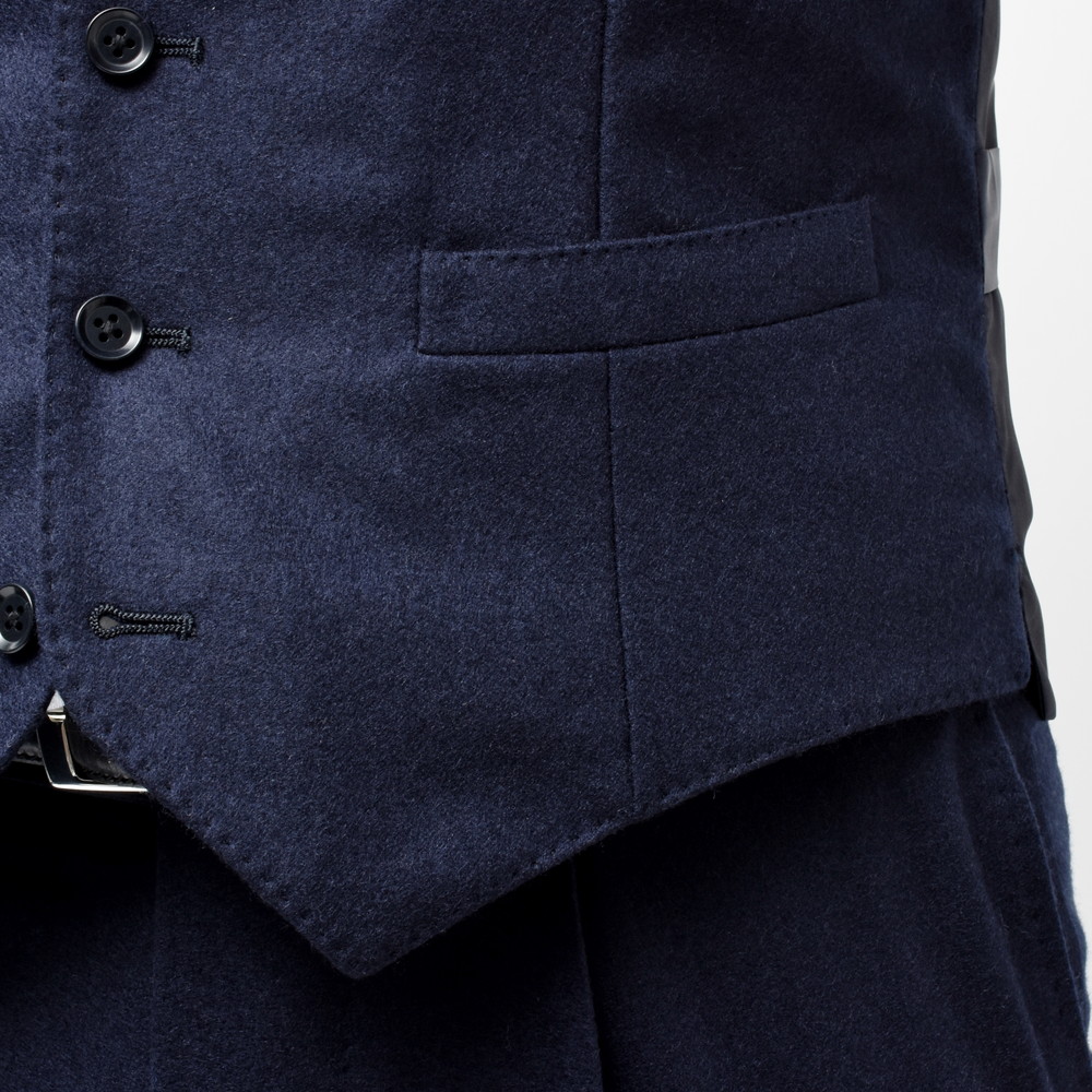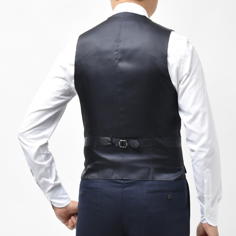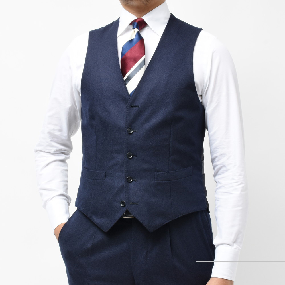 ベーシックな見え方のスーツ程スリーピーススタイルが映える・・・という事で、この生地でジレを展開しているのは必然のことかと。