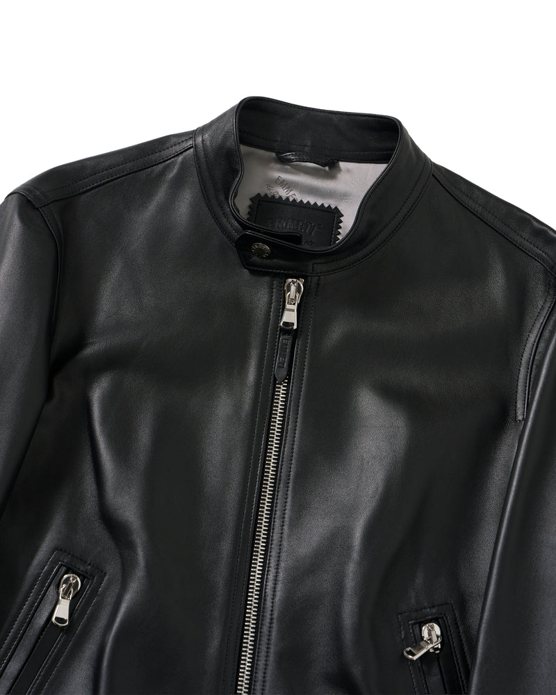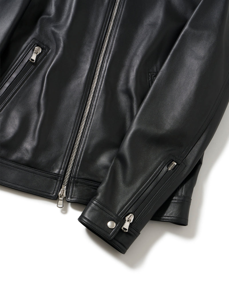 クラシカルなレザーライダースをスマートな印象に仕上げた同ブランドらしい一着となっています。