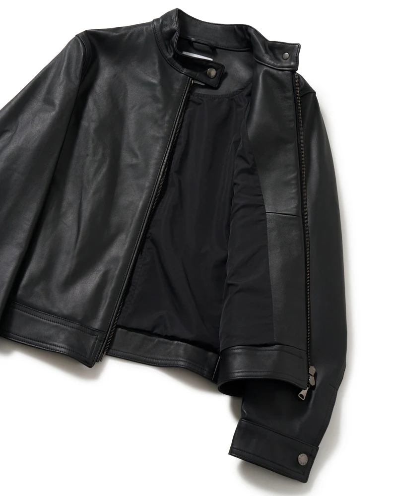 ミニマルなデザインとテーラードパターンが特徴のJURIをウィメンズ仕様に設計にしたのが、こちらのシングルライダースジャケット。