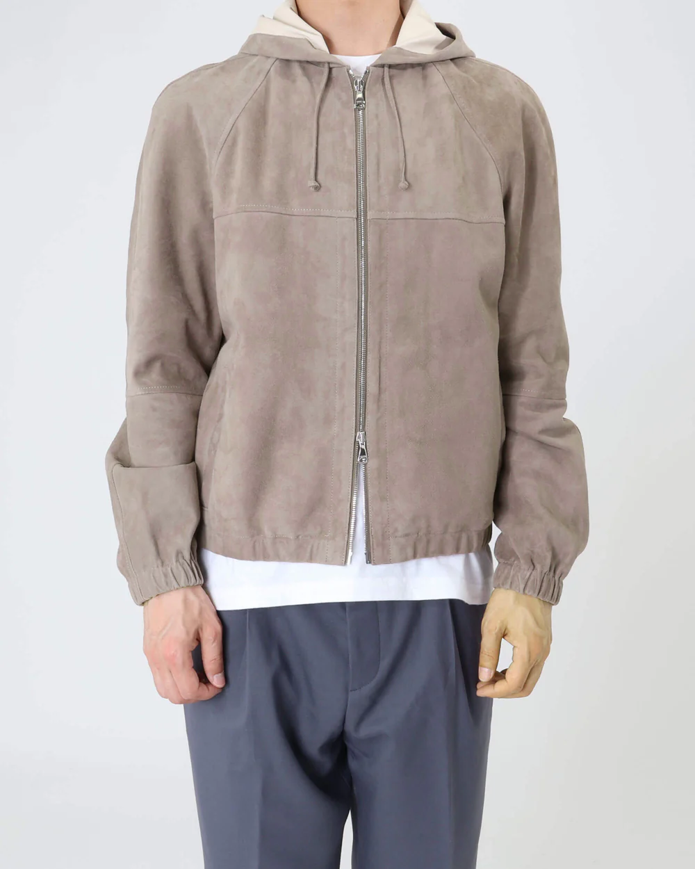 エンメティ / JAYDON SFOD(ジェイドン スフォデラータ) シルバーZIP ゴートスエード アンライニング フーディー / グレージュ