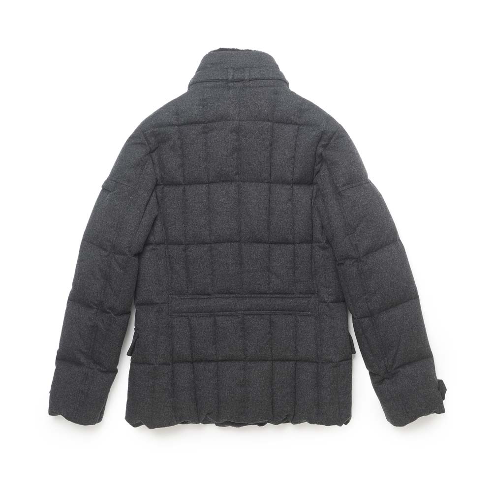 素材はカシミア100%。ロロ・ピアーナ社の「ストームシステム?」という、防水性・防風性に優れたファブリックを採用しています。