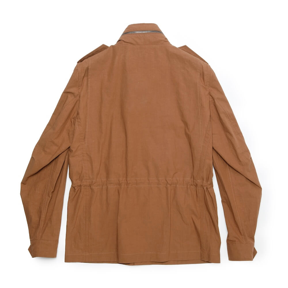 フィールドジャケットの象徴ともいえる4つのフラップポケットを配し、機能美を際立たせています。肩にはホーンボタン付きのエポレットをあしらい、クラシックな意匠をさりげなく強調。