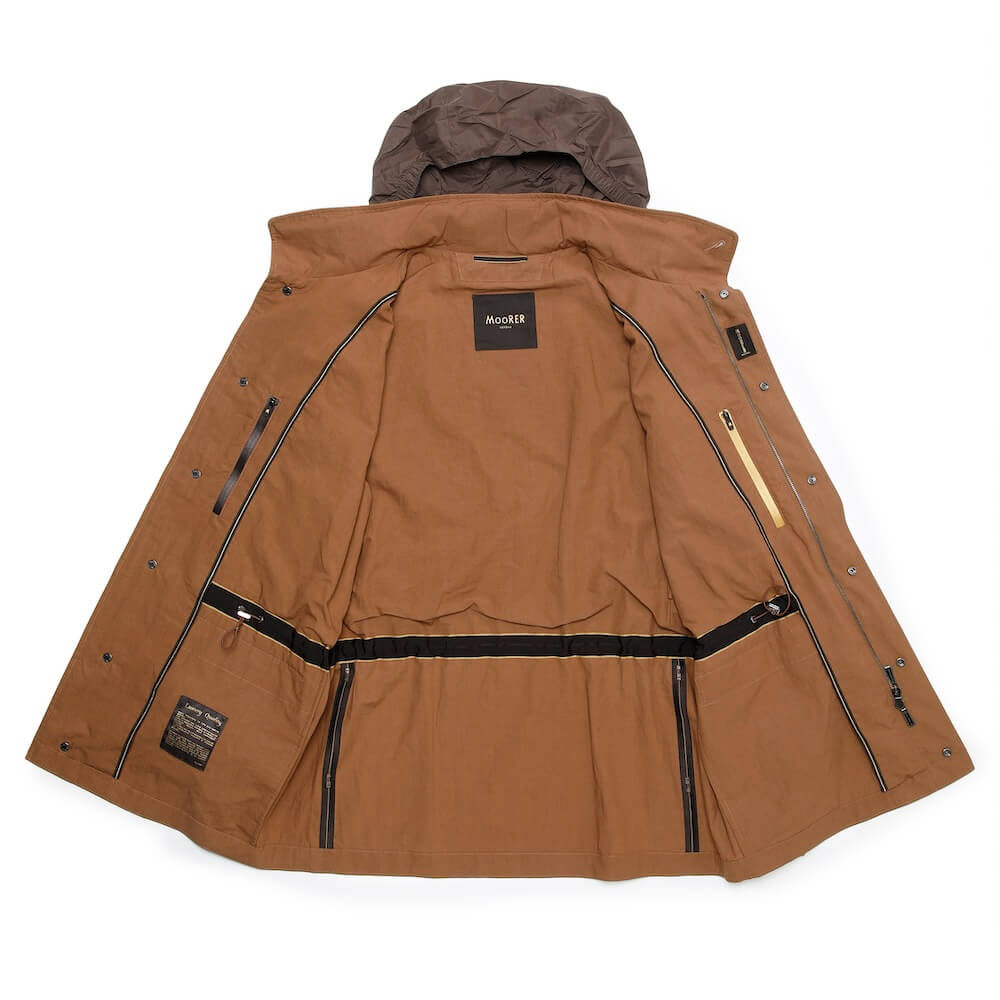 ウエストのドローストリングでシルエットの調整が可能。襟にはフードが内蔵され、シーンに応じたアレンジが叶います。