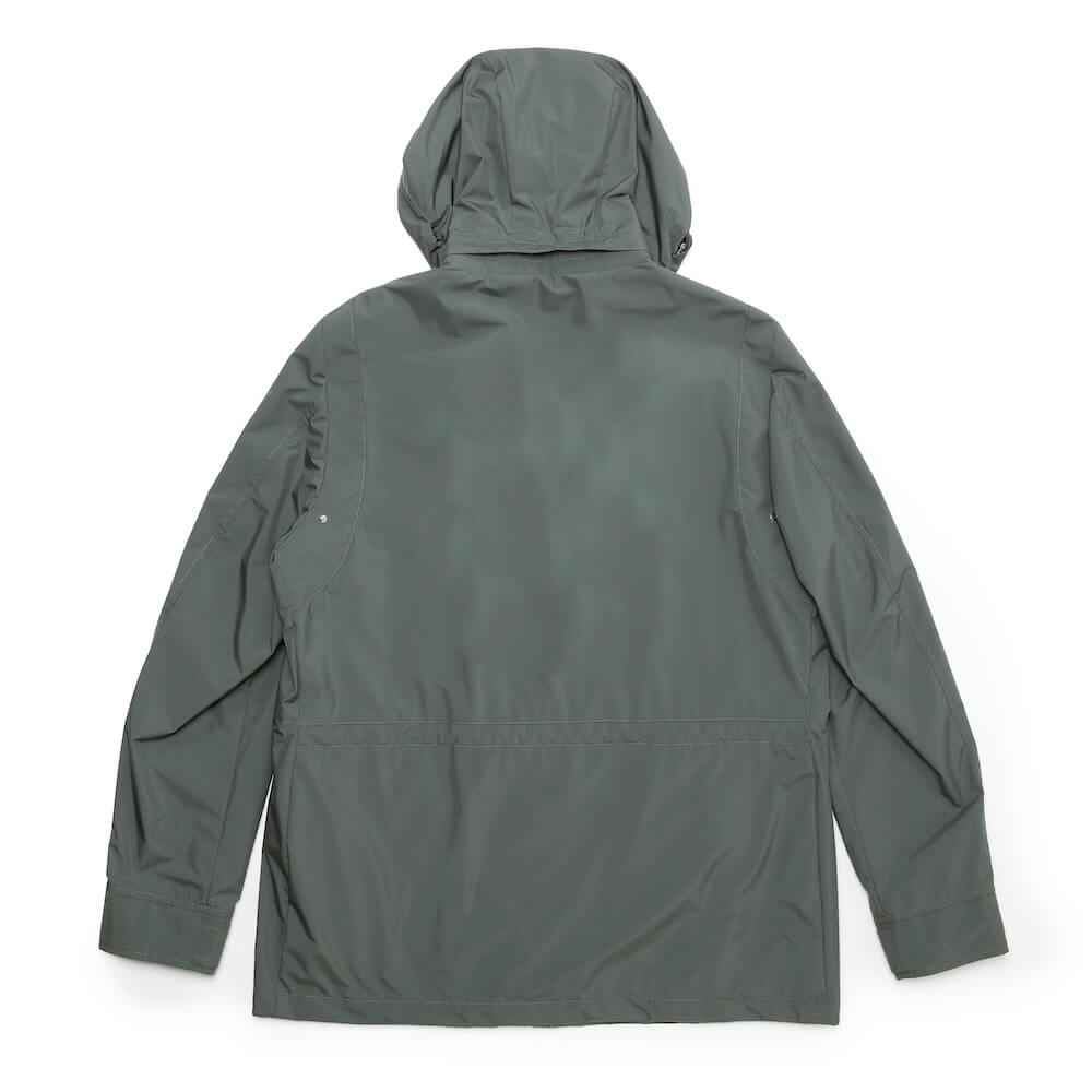 フードは取り外し可能。またドローストリングでフードのフィット調整も可能です。全天候に対するパフォーマンスを、端正なエレガンスで包み込んだ一着。新色GINEPRO(ジネプロ)の静寂な森を思わせる深く洗練されたグリーンが、テクニカルな佇まいに確かな気品を宿します。