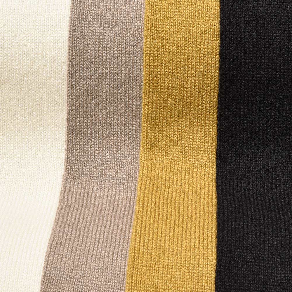 ブランド名に使用しているほどに、カシミヤ素材には並々ならぬ自信があります。フワフワとしたカシミヤ素材はまろやかな肌触りで、一見して品質の高さを思い知らされます。加えて、Settefili Cashmereらしい優しくも美しい発色は、スタイリングを上品なものへと昇華させてくれる副産物をもたらせます。