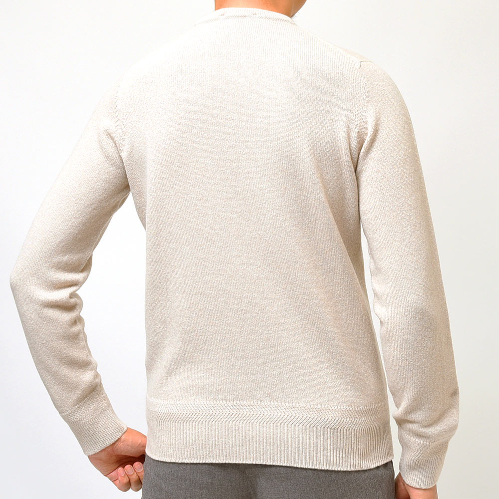 ココンチでは珍しい7ゲージの編み地はリサイクルカシミヤを混紡した本国モデルの“NIKO”。肩周りはややコンパクトにし、身幅とアームホールに程よいゆとりを持たせたココンチの定番シルエットに、袖口や裾のリブにも編み地でデザインを施したスペシャル感のある一枚となっています。