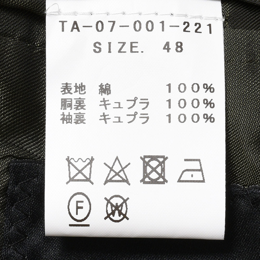 目付215グラムといい塩梅のウエイトとなっているため、春先や秋口はもちろん、レイアードをして頂ければ冬コートとしてもお使い頂けるフットワークの軽さもさすがで御座いますm(__)m