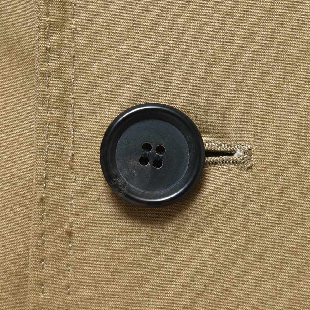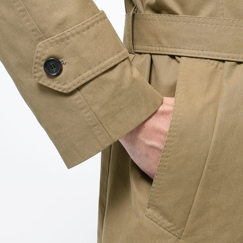 こちらは、1858年にイギリスのヨークシャーで創業された老舗コットンメーカー“Brisbane Moss(ブリスベンモス)”の目付け215gのライトウエイトなコットン素材を使用。軽い目付けではありますが、生地に張りがあり頼り無さは皆無。ややブラウンがかったベージュがコットン素材と相まって、枯れたような男性の色気を掻き立ててくれるかのような佇まいです。