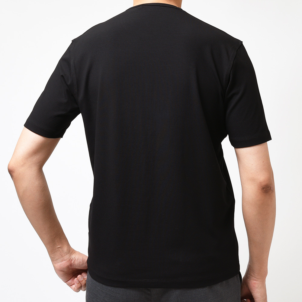 世界最高のヴィスコース糸と名高い、“LENZING社”のヴィスコースストレッチ糸を使用したPHIL PETTERのカットソー。某ビッグメゾンでも使用されているヴィスコースは、非常に高級感のある質感です。また、強く捻りを加えた糸を使用することで生地に表情が生まれ、ドライなタッチが清涼感ある風合いとなっています。少し余裕を持って着用すると落ち感が出ることで、一枚で着てもコナレタ印象を作り上げてくれます。
