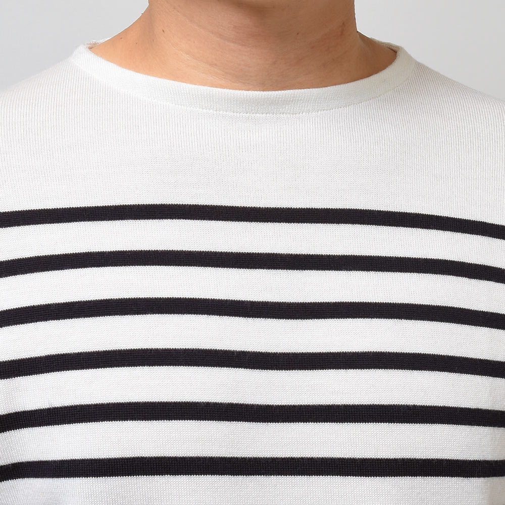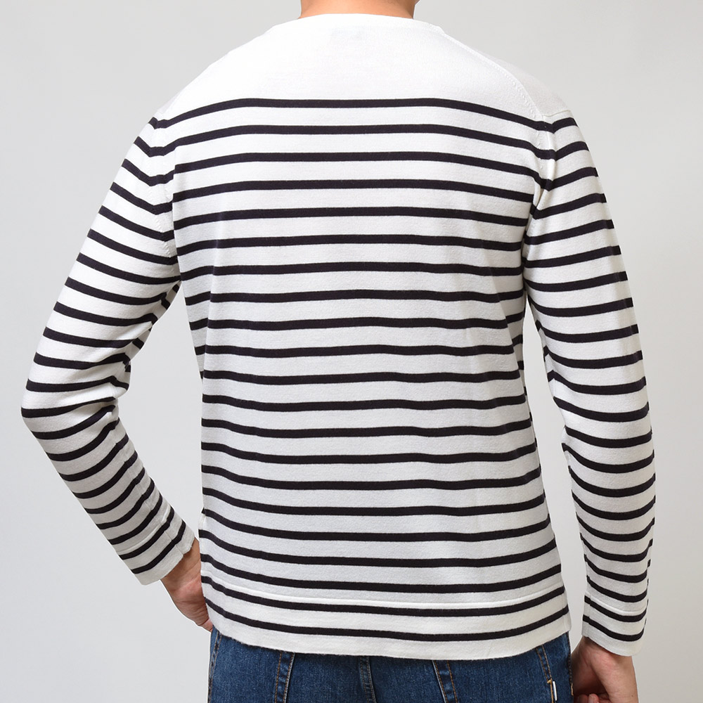いわゆるバスクシャツタイプですが、よくあるそれとは違ってニットでつくられるとここまで上品に仕上がるというわけなんです!!