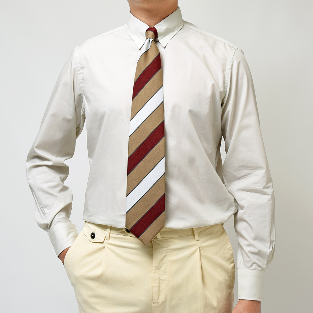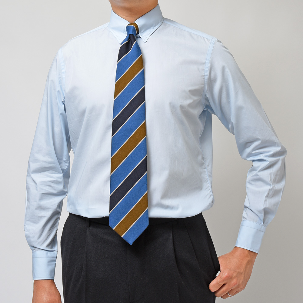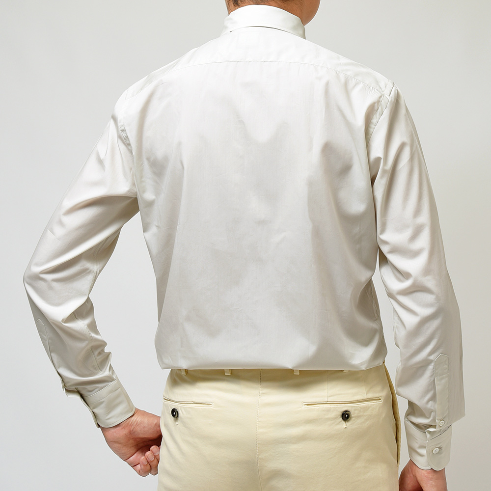 エレガントなドレススタイルを作る上で欠かせないタブカラーのドレスシャツ。こちらは薄手で美しい光沢感を持つコットンブロードを使用しています。その質感が醸し出す高級感にクセになる滑らかな肌触りは、見る者も着る者も虜にしてしまいます。