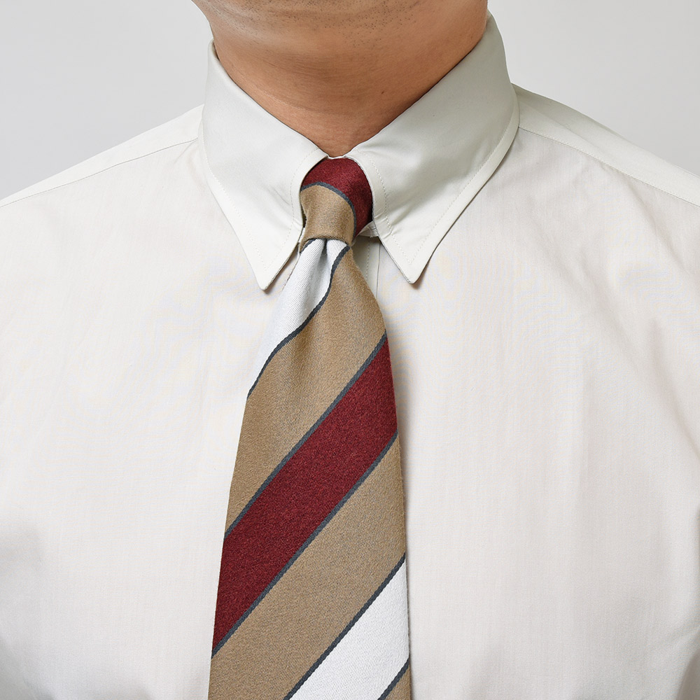 クラシックスタイルには必要不可欠なタブカラーシャツは、ノットが持ち上がることで代え難い大人の色気を醸し出します。