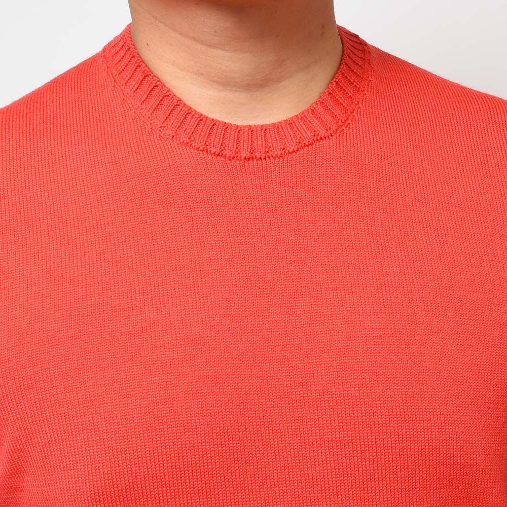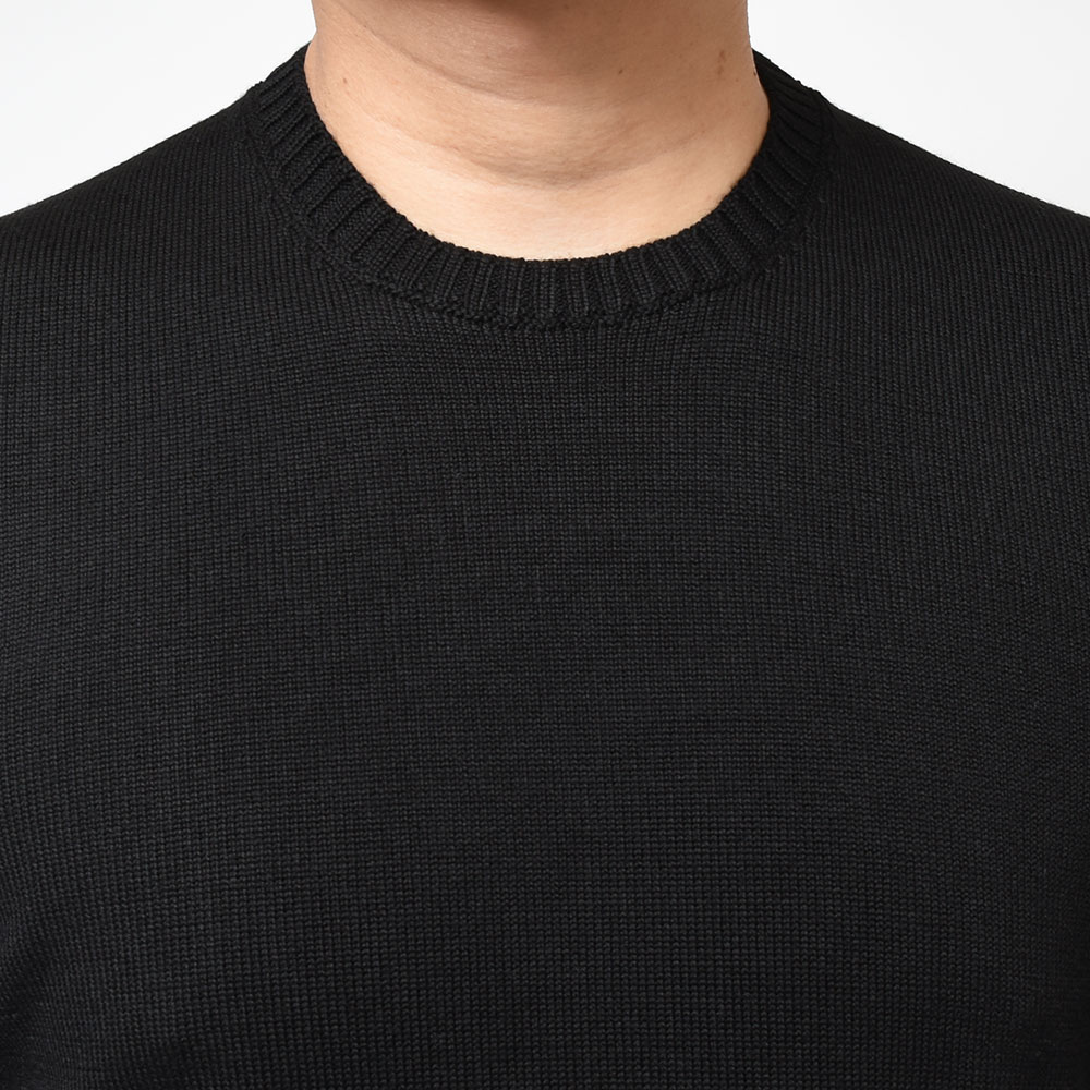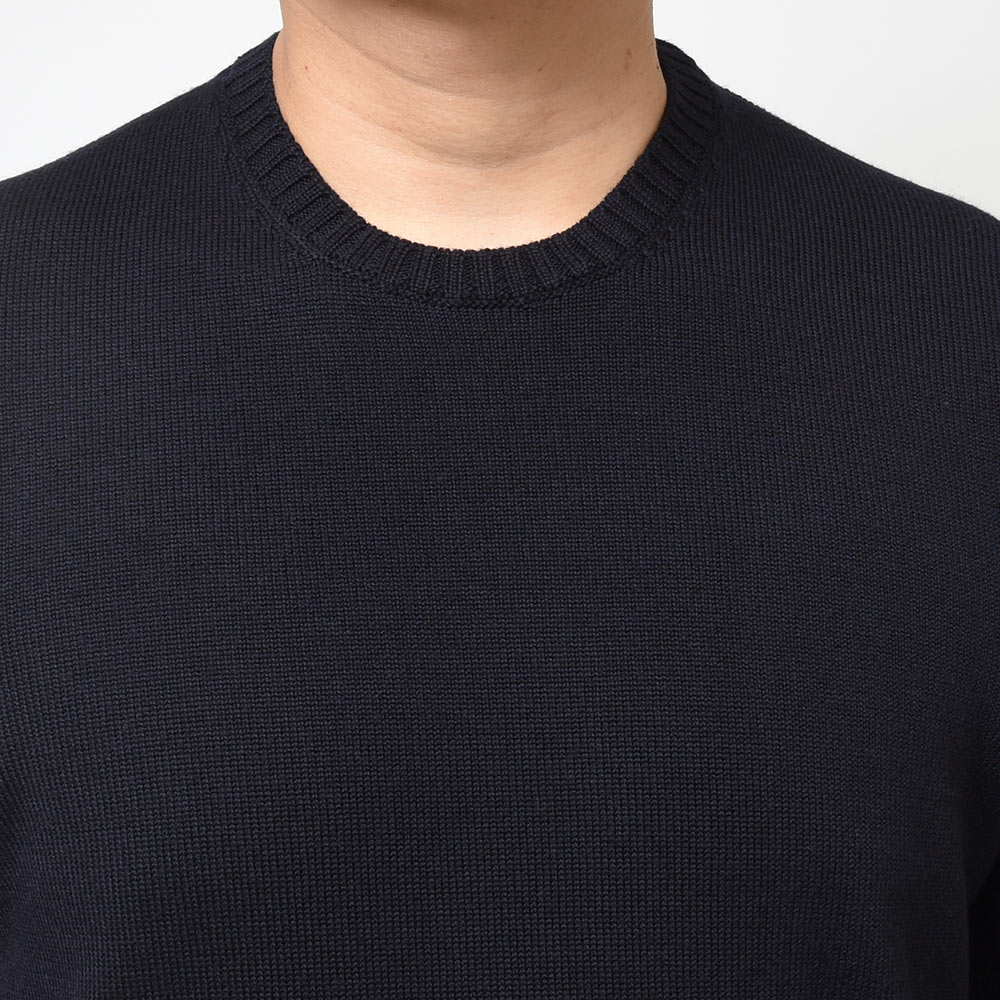 カットソーのみならずニット界でもすっかりチームの顔となったクルーネックニットは、一枚で着ても薄すぎず、インナーでもゴワゴワしない、こちらの8ゲージが最優秀ではないでしょうか。