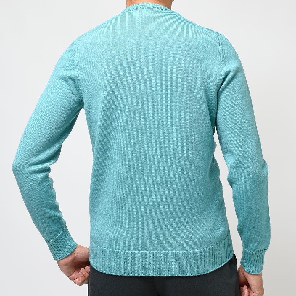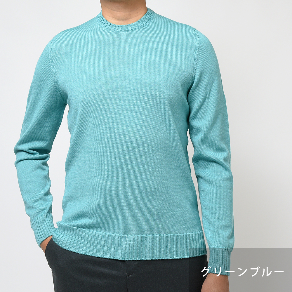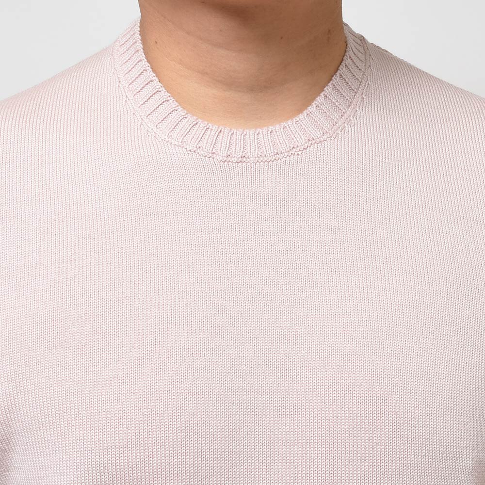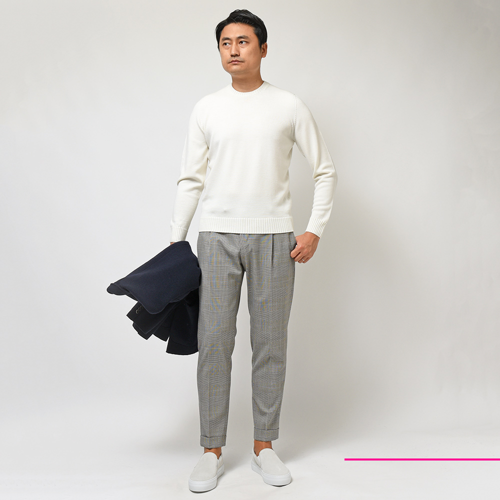 カットソーのみならずニット界でもすっかりチームの顔となったクルーネックニットは、一枚で着ても薄すぎず、インナーでもゴワゴワしない、こちらの8ゲージが最優秀ではないでしょうか。