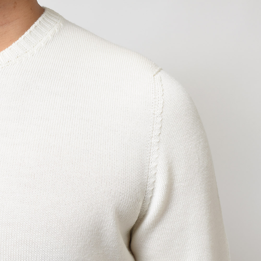 Drumohrの代名詞として確固たるポジションを築いている“8ゲージ”シリーズ。ジャケットのインナーにも使用できる少しライトなミドルゲージは、言わずもがなの汎用性でココンチを代表する新たな人気アイテムとなりました。様々なパンツと良好な相性を誇るクルーネックは、一枚で着ても良し、インナー使いでも良しの、この一枚があれば無類の汎用性を発揮してくれます。