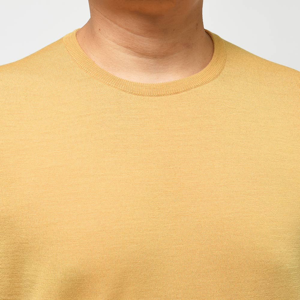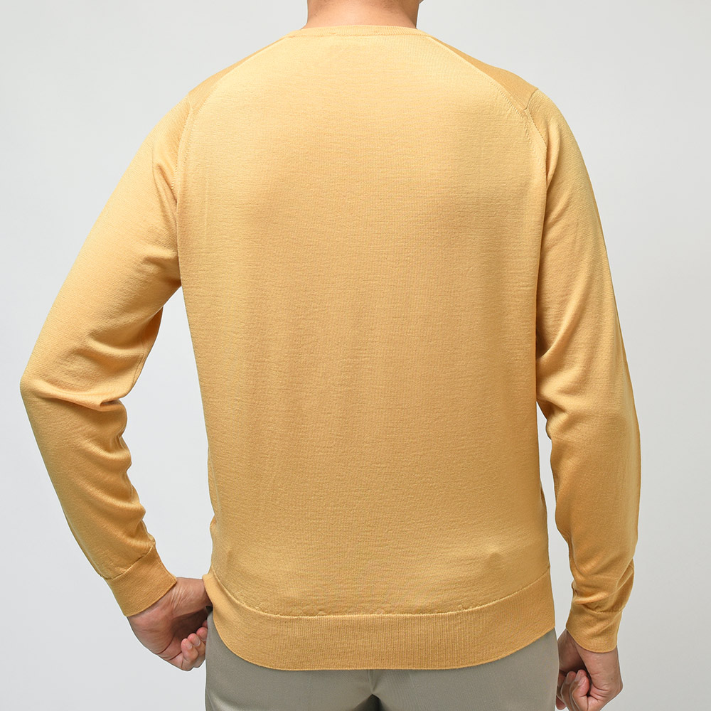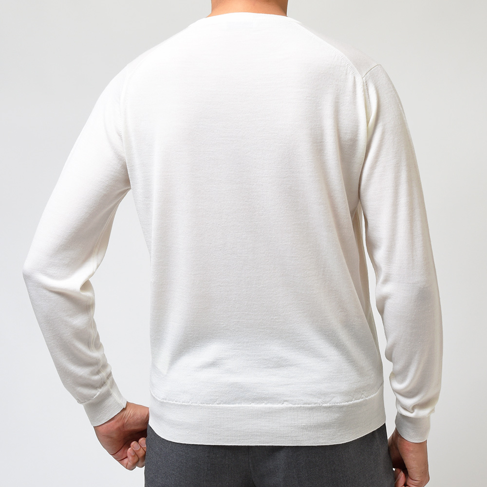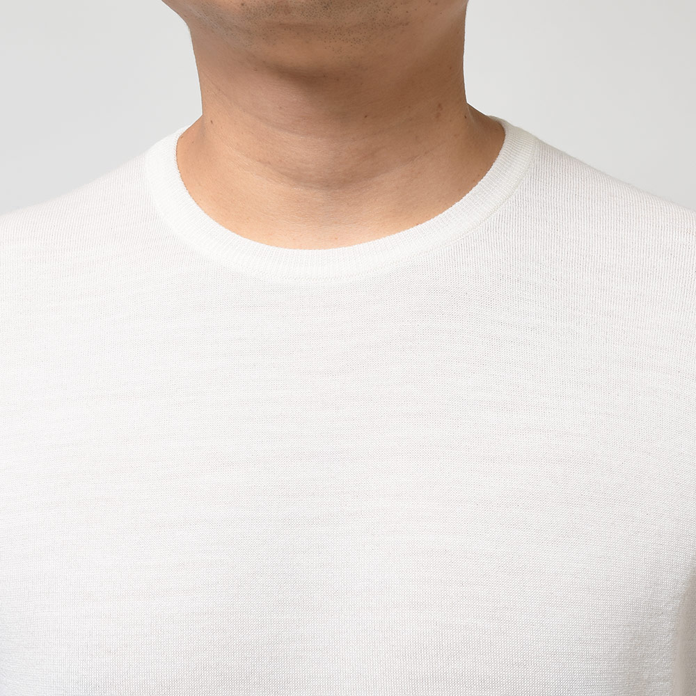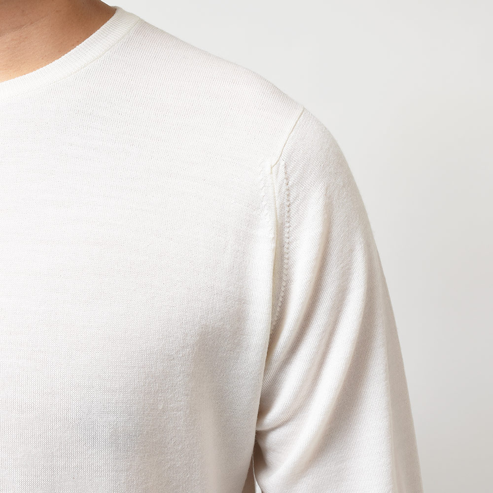 メリノウールを使用した30ゲージのふんわりと柔らかで、それでいてペラペラすぎないという絶妙なバランスで成り立っている、JOHN SMEDLEYの代名詞であり不動のロングセラーアイテム。クルーネックニットはスポーティーな印象をコーディネイトにもたらせ、かつジャケットのインナーにも使用できる高い汎用性を持ったアイテムです。