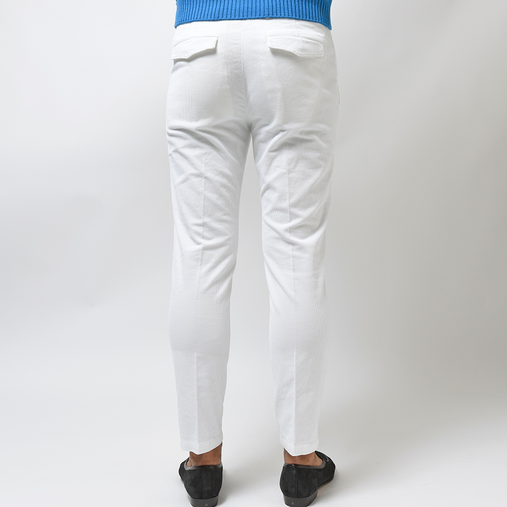 テーマごとにモデルが分類されているPT TORINO DENIM。その中からモデル“JUNGLE”をご紹介。キレイめなデニムとしてジャケットにも合わせられるPT TORINO DENIMですが、こちらは一番細いシルエットのSKINNY FITを採用しつつも、前がスラントポケット、後ろがフラップポケットというドレス感のあるディティールになります。