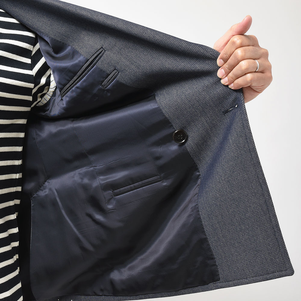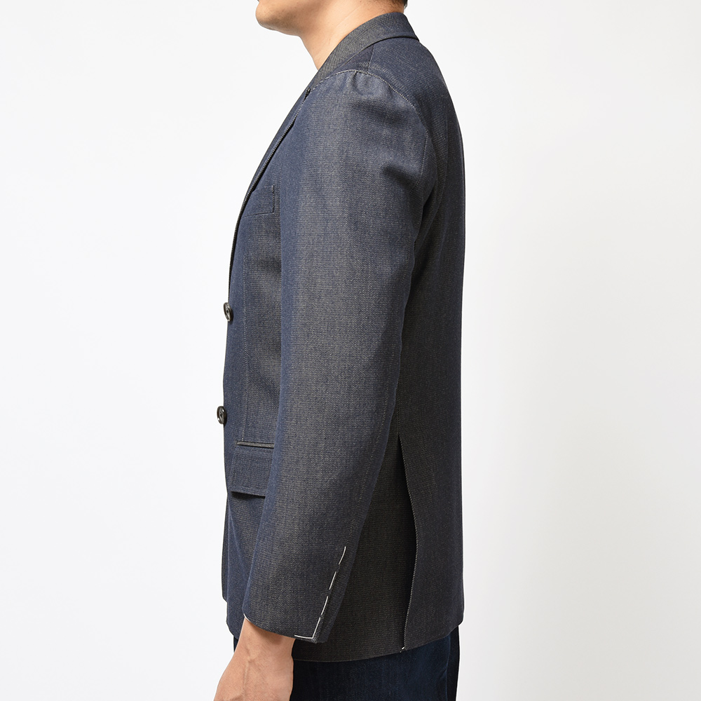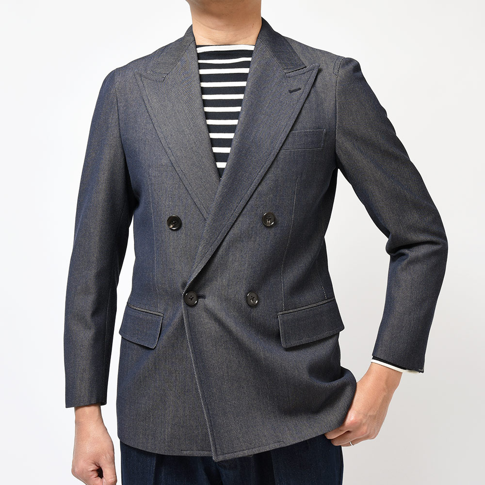 デニムライクウール アンコン仕立 ワイドピークドラペル ダブル4Bジャケット