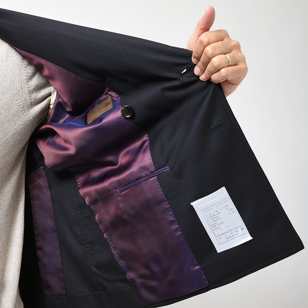 ラティーノショップが増床してからというものラティーノのジャケットやスーツにコートなどなど接客させて頂く機会がかなり増えたわけなんですが、皆さん口を揃えて”軽いっっ”とおっしゃられまして、それだけ着心地の軽さは飛び抜けていると思うのですが、そこからさらに副資材を極力省いたり薄い芯地で仕立てられているのがコチラの”EMILIO”です!!