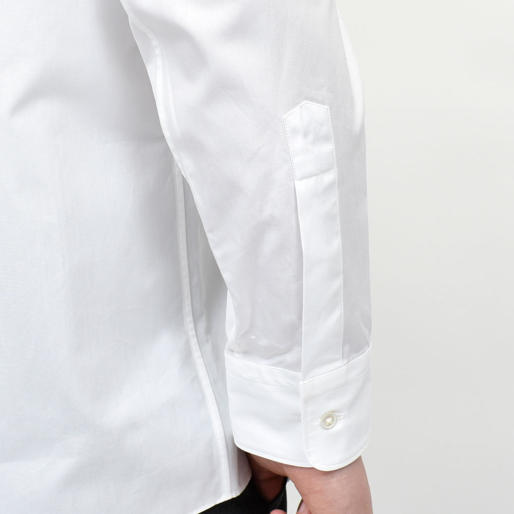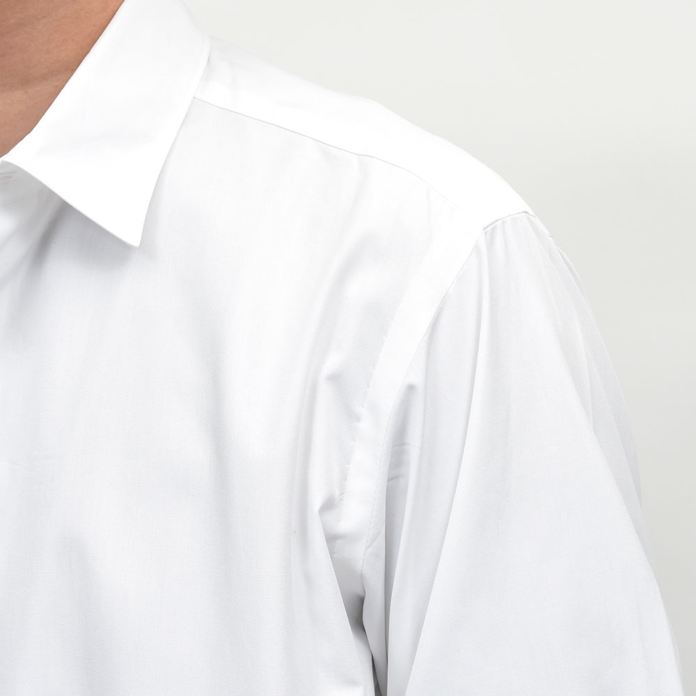 身頃は少しゆったりとさせてプリーツの分量を増やし着心地の良いシャツに仕上げています。
