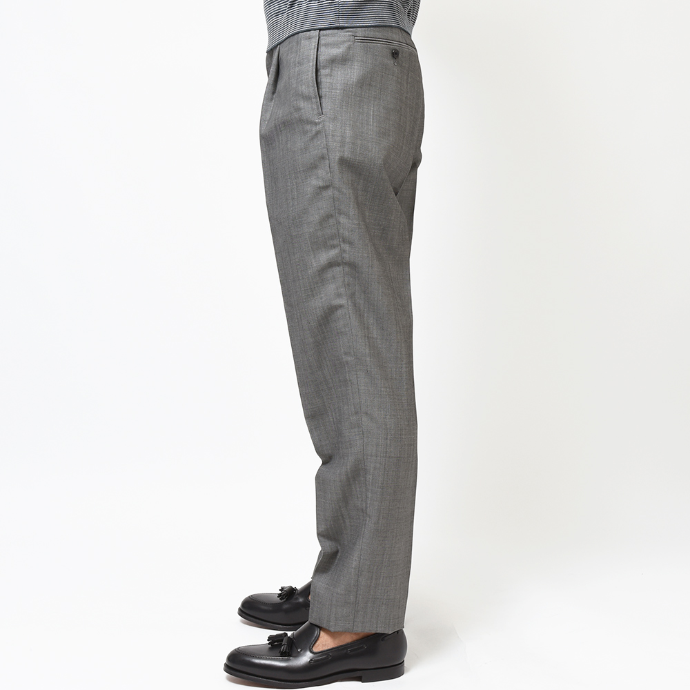 ややハイバックにした太過ぎず細すぎずの絶にして妙とも言えるテーパードシルエットのアウト1プリーツのスラックスになります。