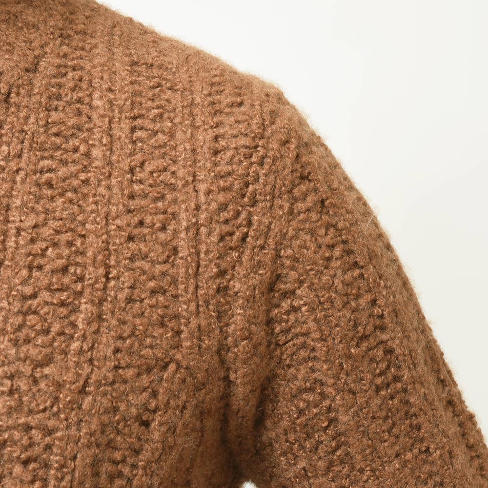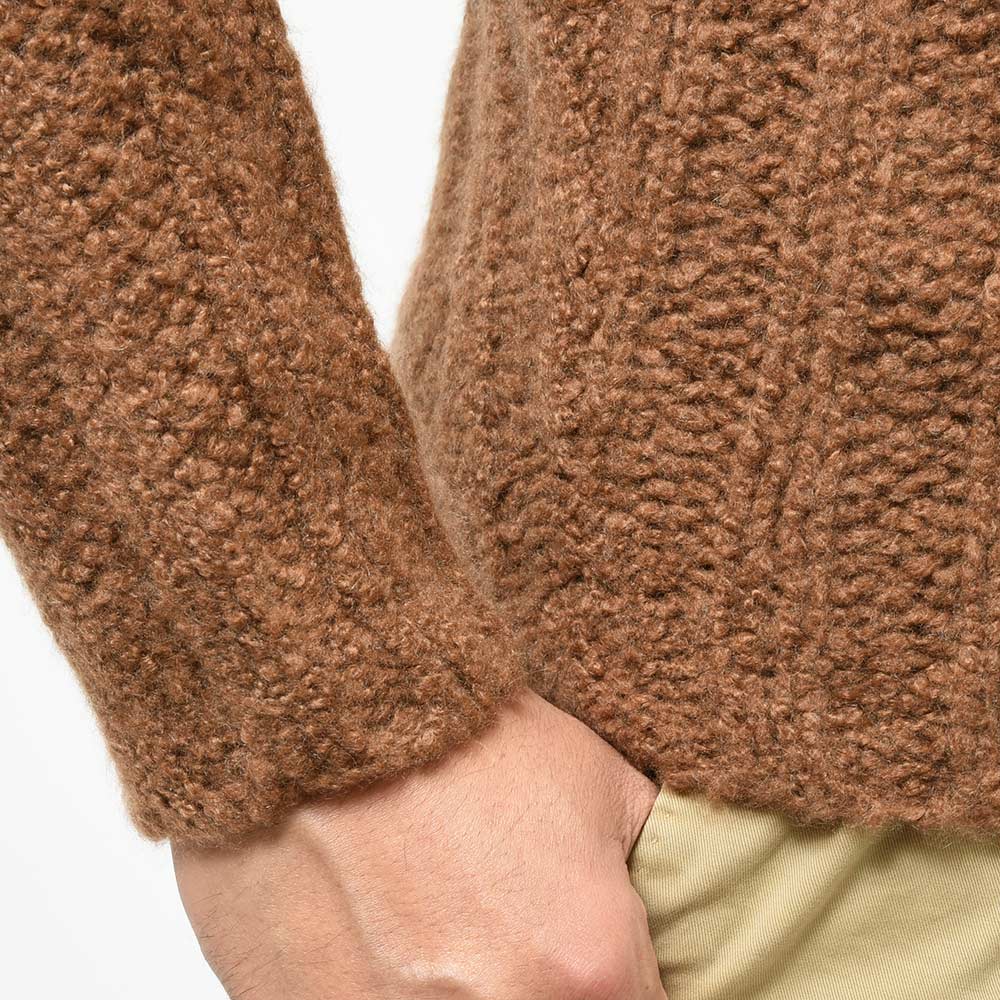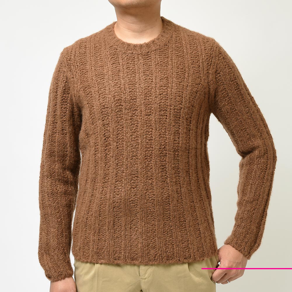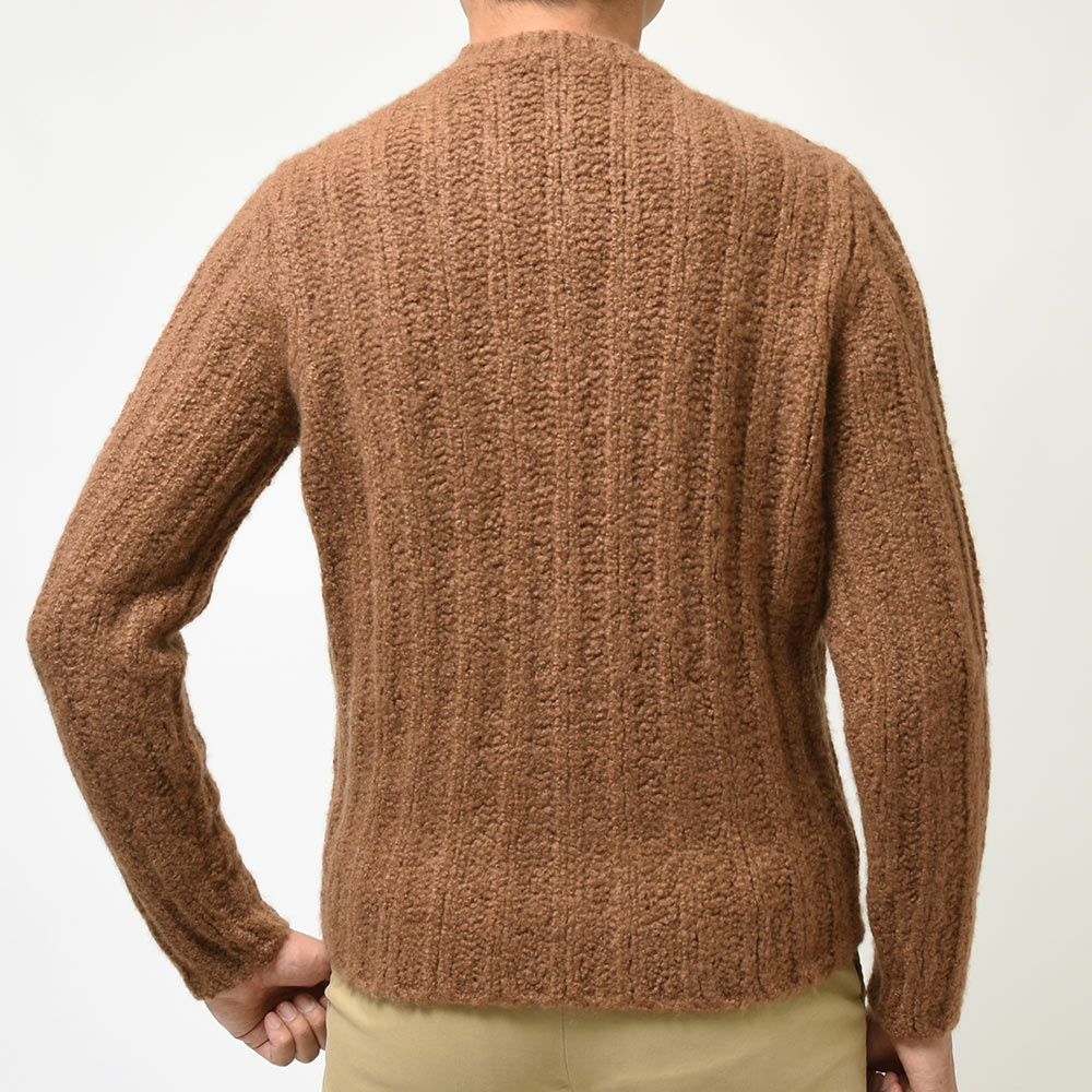 ジャケットやスーツだけには留まらないSTILE LATINOのコレクション。ヴィンチェンツォ氏自ら生地をセレクトしたこちらは、カシミヤをふんだんに使用したローゲージのクルーネックニット。カシミヤをベースにシルクを混紡した柔らかくも滑らかな質感は、上質なファブリックが醸し出す高級感に、非常に美しい発色を可能としています。さらに、ケーブル編みとはまた違ったリブ編みのような編み地が、良い塩梅のアクセントを作ってくれるため、インナー使いは勿論、一枚で着ても主役級の存在感を示してくれます。