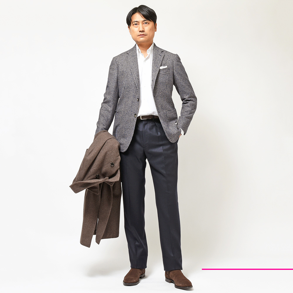 メランジの効いた何とも言えない深みと共に、主張しすぎないけれども確かな存在感を示してくれる一着です。